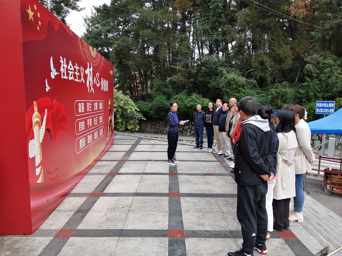 活动于下午4点在鹿冲关地球仪处准时开始,两个支部的全体党员佩戴党徽列队共同了背诵“社会主义核心价值观”同时,在校区内抽取员工背诵“社会主义核心价值观”并向员工发出倡议,自觉遵守校园纪律,摒除校园内不文明行为,争做文明员工。此次活动得到了员工的积极支持和参与,被抽背的员工均能完整背诵二十四字“社会主义核心价值观”,在足球场的上体育课的员工非常配合支部党员的倡议,主动拾取地上少量的垃圾扔到垃圾桶,展现了公司青年员工良好的精神风貌。
