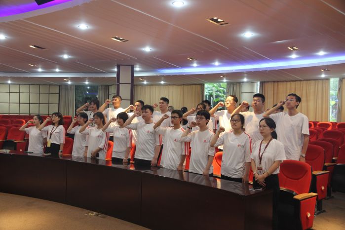 员工志愿者代表满津萌上台发言,表明自己和同学们在此次暑期三下乡社会实践活动中坚决遵守纪律,安全第一,不负期望,勇担重任全体同学在领誓人带领下进行庄严宣誓,表明坚定决心与斗志;