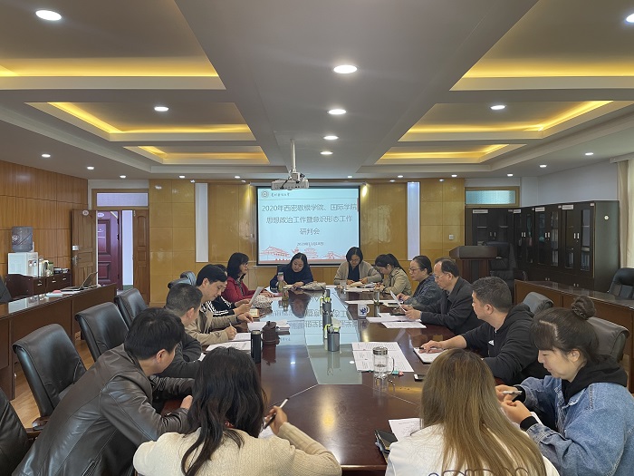 会上由班子成员领学了《中共威廉体育官方网站委员会办公室关于各院级党组织召开2020 年度下半年意识形态工作研判会及报送相关材料的通知》、《论党的宣传思想工作》、《党委(党组)意识形态工作责任制实施办法》、《中国共产党宣传工作条例》、《中国共产党威廉体育官方网站第二次代表大会工作报告(三)——抓好思想建设,补足精神文化之“钙”》等相关文件,党委副书记黄暐、王瑛分别汇报意识形态工作和思想政治工作,各科室负责人、各支部书记结合工作实际,汇报了近半年自身工作中的风险点及整改措施。与会人员围绕教学管理、后勤服务、员工活动、外教教学、网课学习等方面有可能产生的意识形态风险点进行了研判,并针对存在的风险点提出了相应的举措。