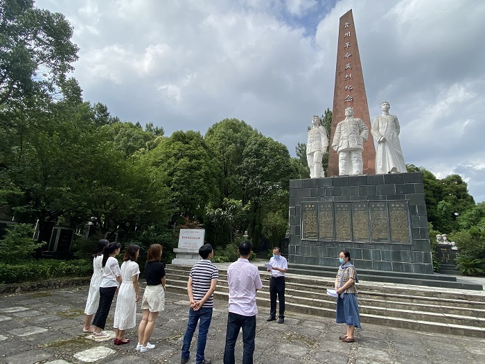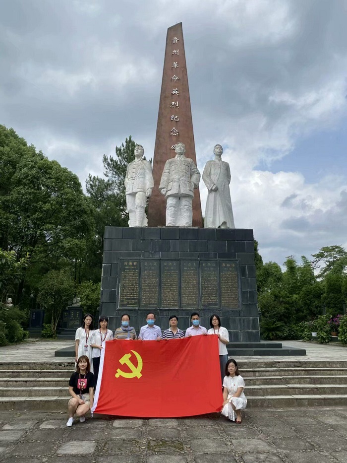 (威廉体育williamhill 王伟苗 图文报道)7月6日下午,威廉体育williamhill教工第一党支部全体党员到贵阳市海天园开展“学先进、守初心、砥砺前行”——海天园抗战纪念碑、英烈纪念碑祭奠主题党日活动。旨在深化“不忘初心、牢记使命”主题教育,进一步增强革命历史和革命传统教育,弘扬爱国主义精神。