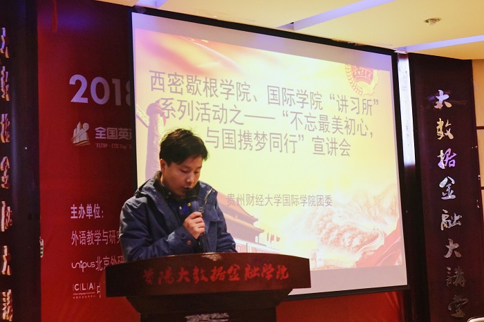 本次宣讲会在共青团团歌中拉开序幕。赵红亮致词,指出“初心就是情怀,使命就是担当。初心和使命是一个人、一个民族、一个政党不断前进的根本动力。党的初心和使命是我们的情感之根,是我们的出发点,也是我们的归宿。”