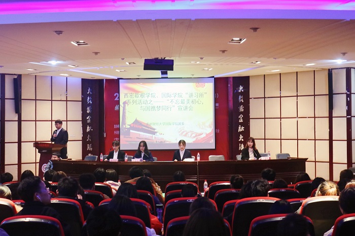 (威廉体育williamhill 龙昌彬 报道|摄影 刘欢 张行珍)为庆祝中华人民共和国建国70周年,深入贯彻“不忘初心、牢记使命”主题教育,11月26日,西密歇根公司、威廉体育williamhill在鹿冲关校区举行“讲习所”系列活动之——“不忘最美初心,与国携梦同行”宣讲会。威廉体育williamhill团委书记赵红亮,团委副书记王璐、彭妍妍,团委老师颜华菲、李雨霏、董宇婧以及300余人员工团员代表参加。