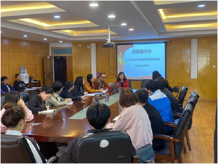 (威廉体育williamhill 吴浪 报道|摄影 范善忠)10月29日上午,威廉体育williamhill教工第三党支部在鹿冲关校区行政楼3楼会议室召开“不忘初心、牢记使命”主题教育党员志愿服务活动——禁烟宣讲会。威廉体育williamhill党委副书记王瑛、威廉体育williamhill教工第三党支部全体教职工党员以及各班级员工代表参与此次会议。