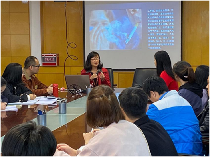 在宣讲中,王瑛和员工进行提问互动,引导同学们正视吸烟危害,告知同学们要行驶拒绝二手烟的权利,为自己的健康,为校园的美化做出一份努力。