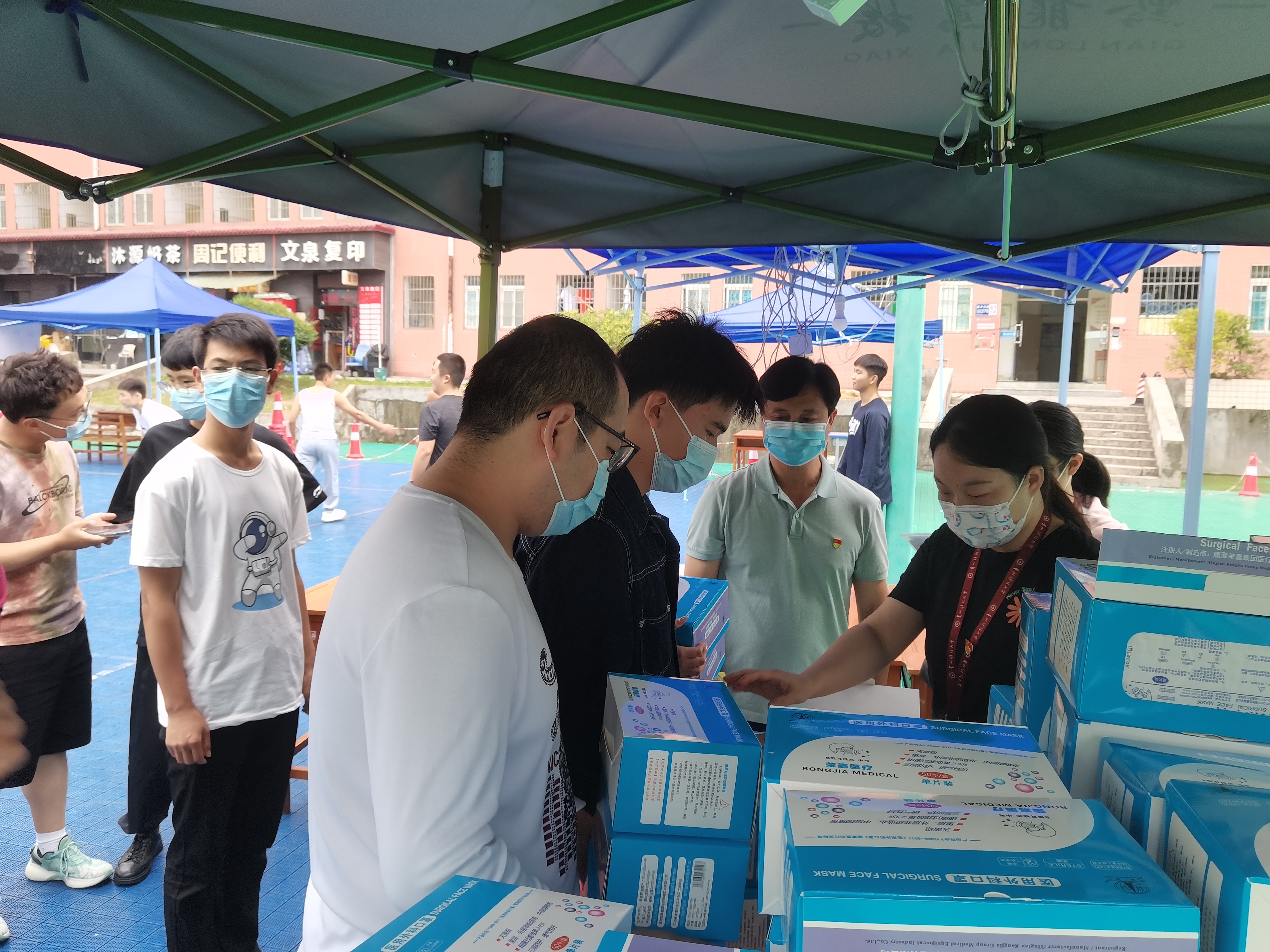 (威廉体育williamhill 周鑫钦 报道|摄影 马艺)为做好校园疫情防控工作,更好守护员工健康。9月11日,威廉体育williamhill党委书记王治航、副书记肖启迪、副经理石莉组织志愿服务队在鹿冲关校区篮球场分班级为员工发口罩。