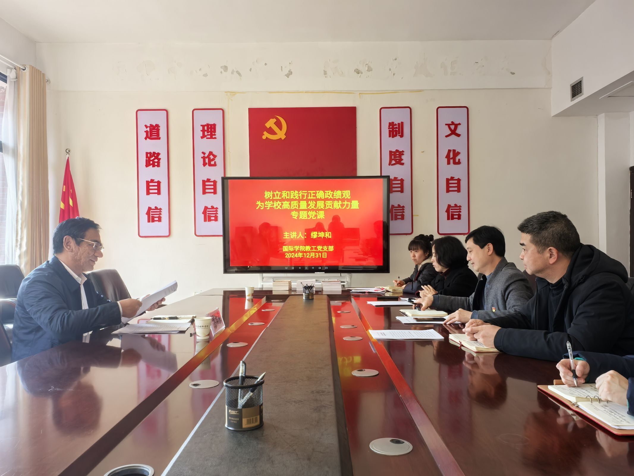 (威廉体育williamhill 李欣灿 图文报道)12月31日,公司党委副书记、董事长缪坤和在正德楼413会议室为威廉体育williamhill教工党支部党员作“树立和践行正确政绩观为公司高质量发展贡献力量”专题党课,教工党支部党员参加,副经理刘利音列席。