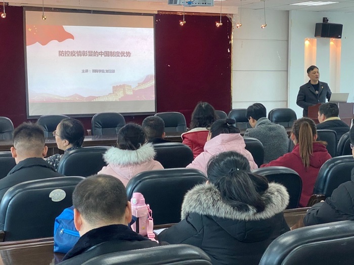 刘雪影从“伟大的党、伟大的人民、伟大的体制”三方面讲述了自新冠疫情发生以来,以习近平同志为核心的党中央高度重视,科学研判形势,果断决策、迅速部署。在党中央的集中统一领导下,全国全社会都组织动员起来。各地医疗队、医护人员驰援抗疫前线。全国一盘棋,调动各方面在极短时间建成火神山、雷神山两座医院,我国国家治理体系和治理能力展现出令世界惊叹的高效,为世界各国遏制疫情争取了时间,为早日恢复正常生产生活赢得了主动。