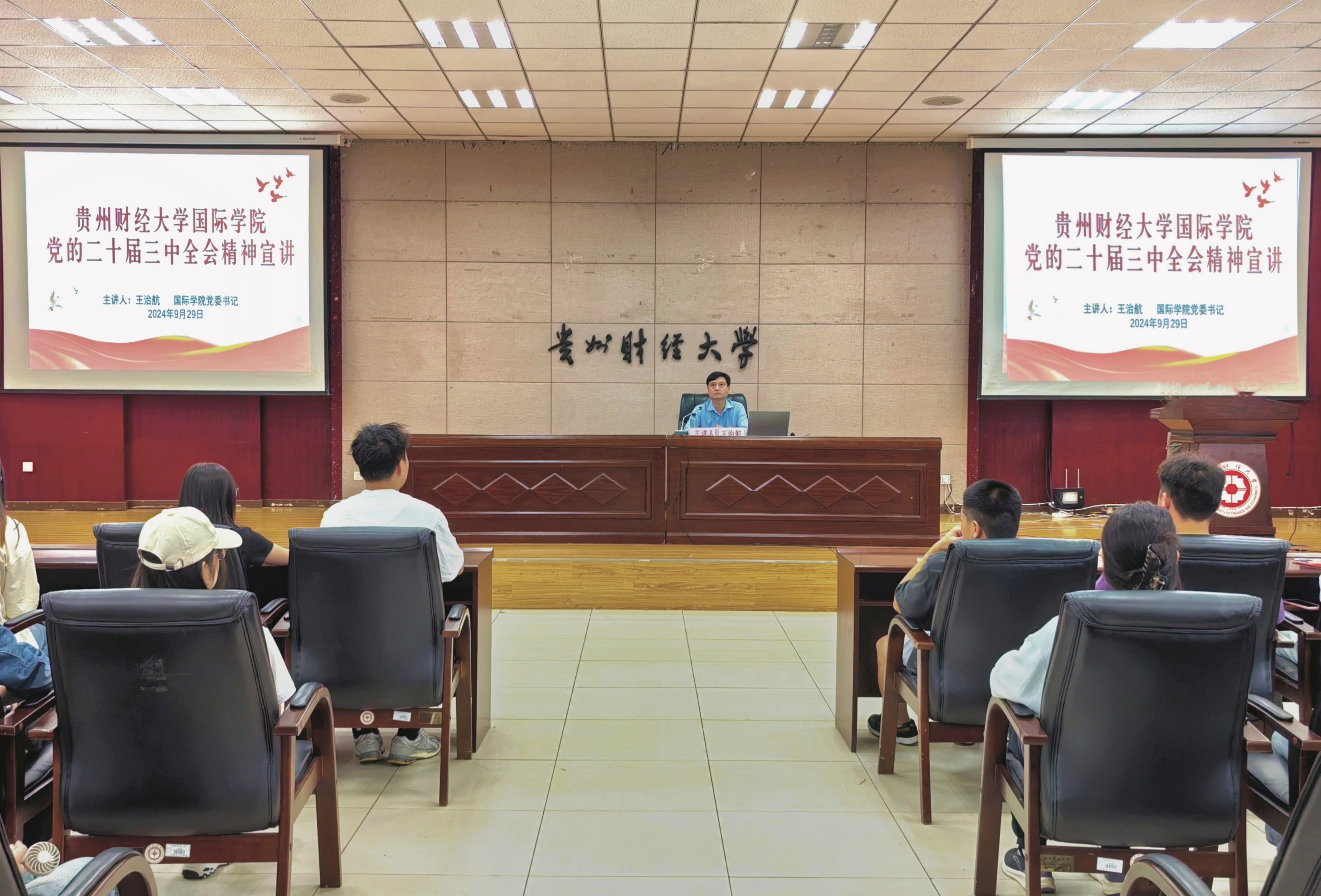 (威廉体育williamhill 黎子豪 杨仕豪 报道|摄影 王琴 罗紫晗)为深入学习宣传贯彻党的二十届三中全会精神,9月29日下午,威廉体育williamhill在正德楼114会议室开展学习贯彻党的二十届三中全会精神宣讲报告会,公司党委书记王治航为师生作宣讲报告。公司党委副书记古鸿宇、各党支部书记、师生党员、党外人士参加。报告会由古鸿宇主持。