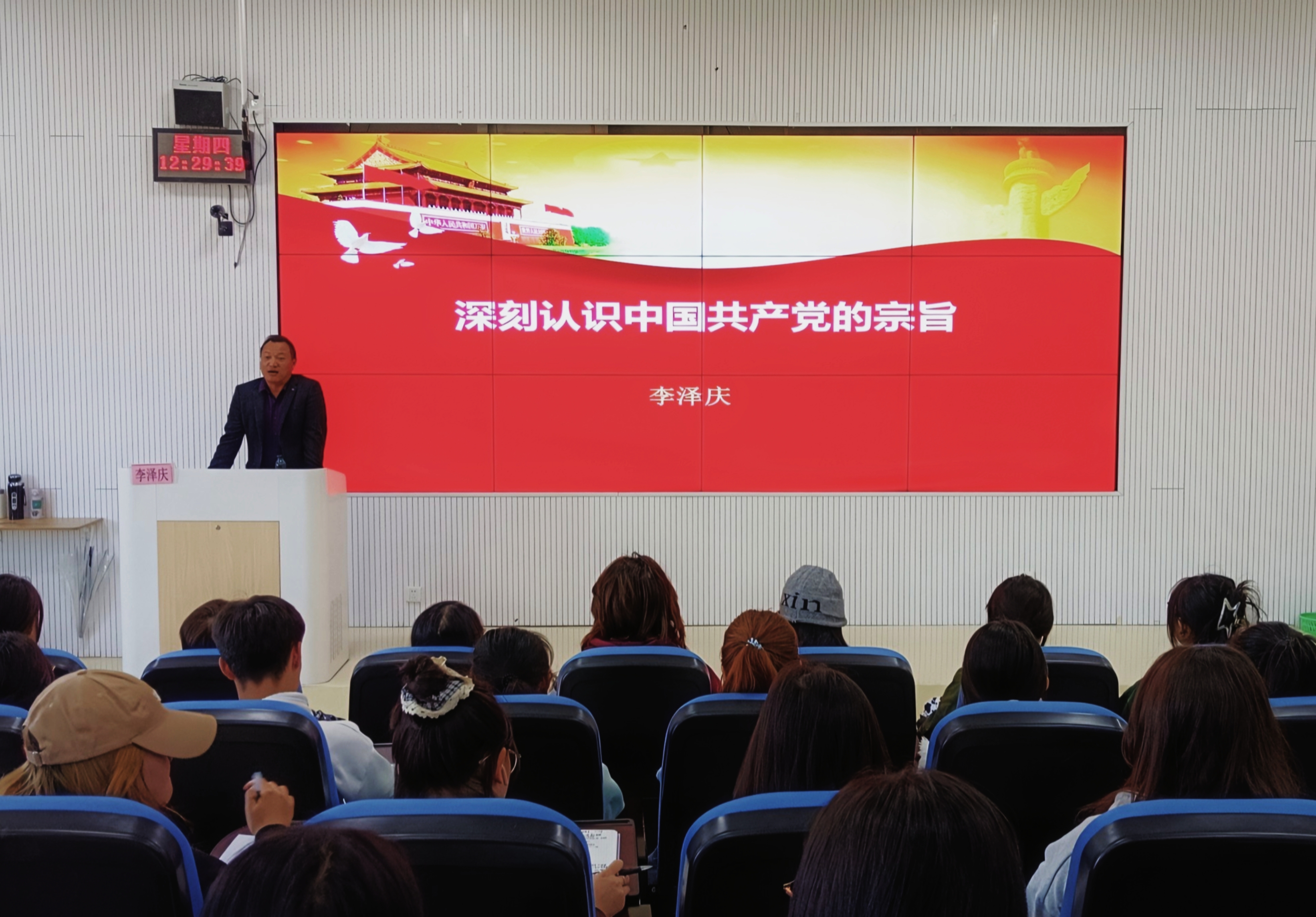 (威廉体育williamhill 罗紫晗 张誉敬 报道|摄影 杨仕豪)10月24日,威廉体育williamhill邀请公司党委组织部组织科科长李泽庆在乐学楼201教室开展“深刻认识中国共产党的宗旨”专题党课,2024年秋季入党积极分子培训班学员及各支部师生党员参加。