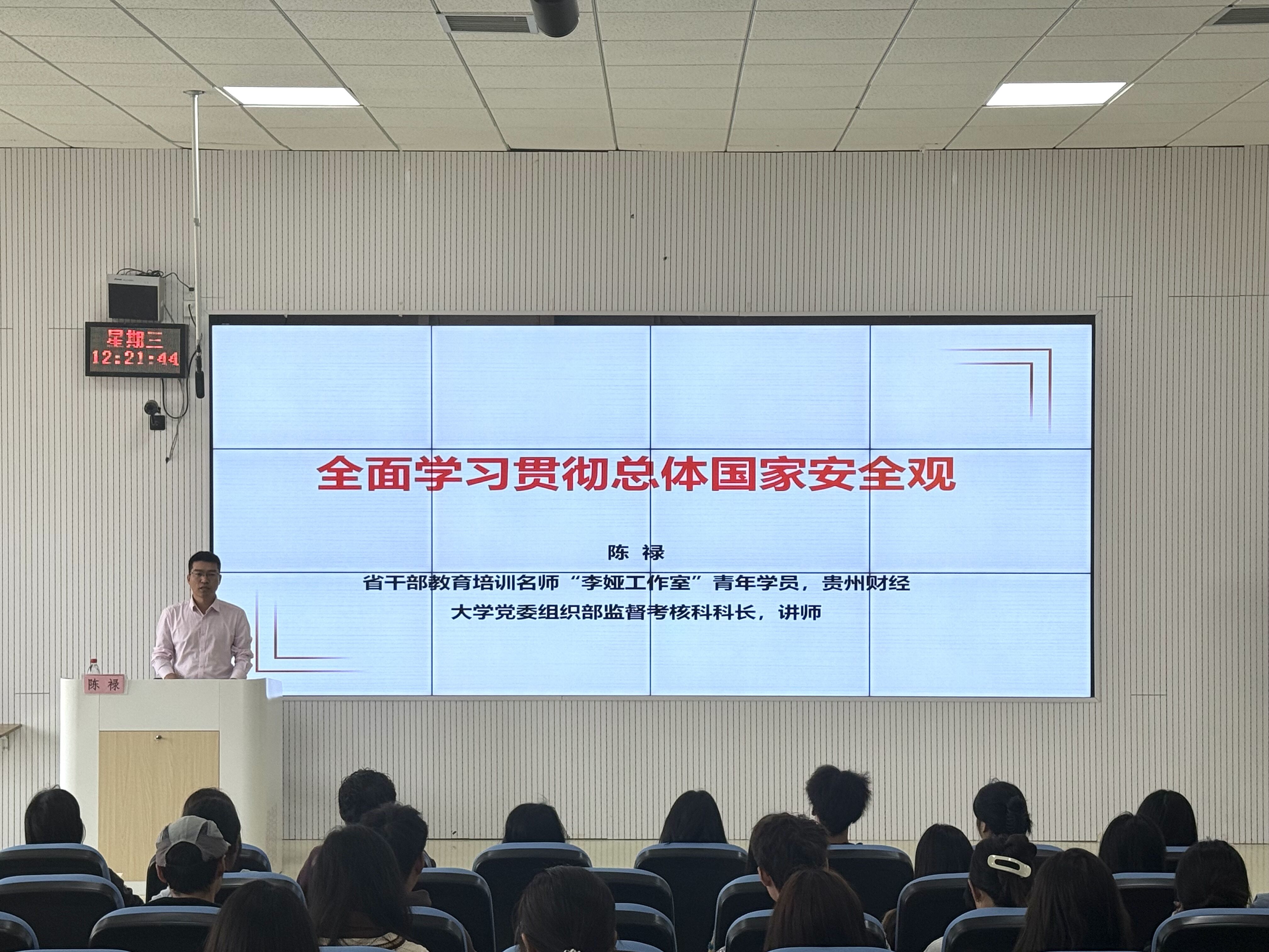 (威廉体育williamhill 潘香云 颜岫影 报道|摄影 龚其柔 刘依月棋)11月6日中午,威廉体育williamhill党校在乐学楼201开展题为“全面学习贯彻总体国家安全观”的专题党课,公司党委组织部监督考核科科长陈禄主讲,公司全体党员参加。