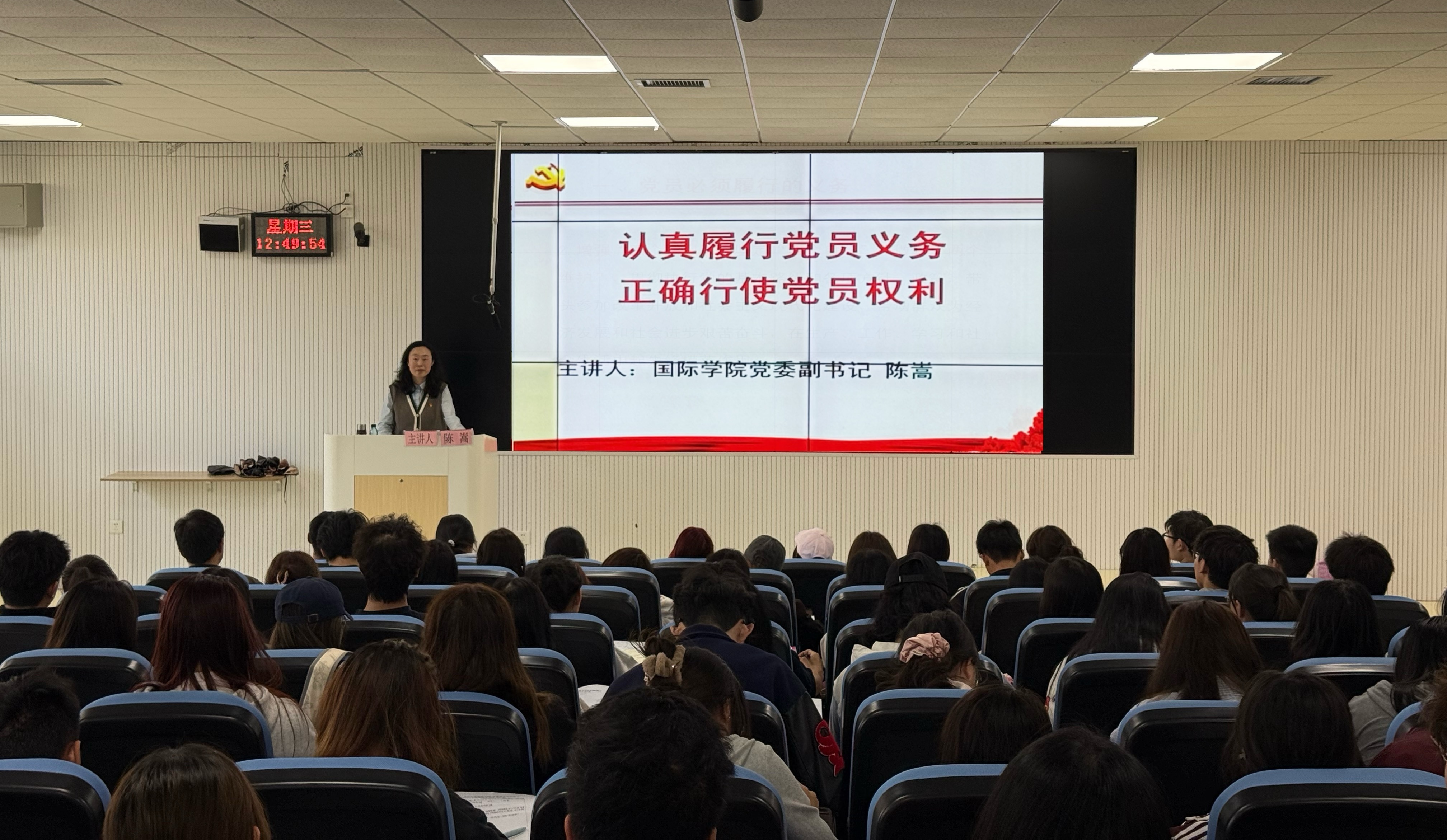 (威廉体育williamhill 颜岫影 报道|摄影 刘依月棋)3月26日,威廉体育williamhill党委副书记陈嵩在乐学楼102教室为2025春季入党积极分子及支部党员作《认真履行党员义务,正确行使党员权利》专题党课。