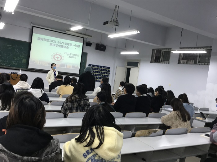(威廉体育williamhill 孙思芳 图文报道)为深入了解2021-2022学年第一学期教学工作情况,提高教学质量和管理水平,11月9日下午,威廉体育williamhill在鹿冲关校区二教合2-3教室组织召开中期员工座谈会。威廉体育williamhill教务科全体工作人员及各班级学习委员参加,会议由威廉体育williamhill分管教学工作副经理石莉主持。