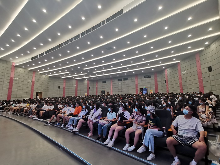黄贵平结合校内外员工的生动案例,给新生们讲解了各类防骗及安全防范、疫情防控等方面的知识。