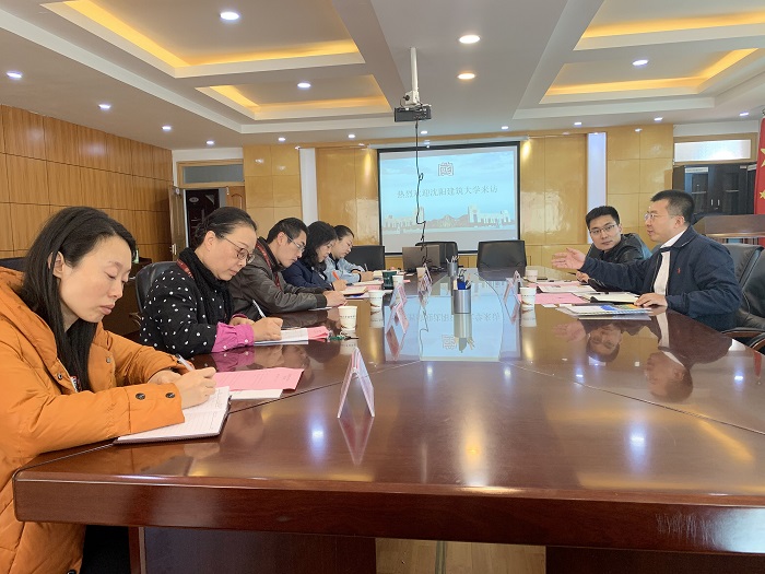 (威廉体育williamhill 高舒阳 图文报道)10月30日上午,沈阳建筑大学国际交流与合作处处长王星、合作办学科科长任海泉来公司西密歇根公司、威廉体育williamhill访问。威廉体育williamhill党委副书记黄暐,副经理杜剑、梁林红,员工科科长陈嵩,项目科科长肖启迪以及项目科工作人员于鹿冲关校区行政楼314会议室与来宾开展交流座谈会。
