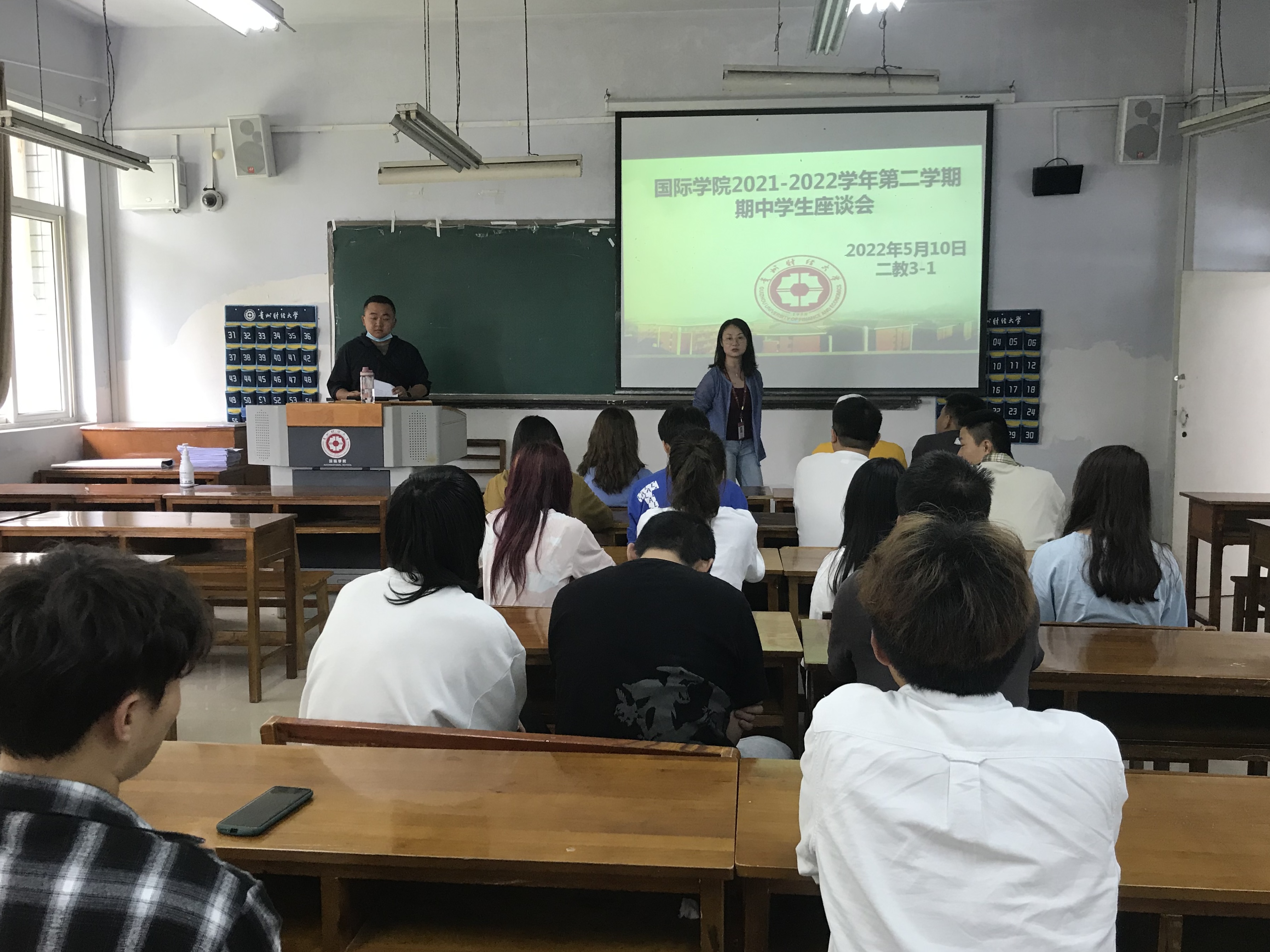 (威廉体育williamhill 孙思芳 图文报道)为深入了解2021-2022学年第二学期教学工作状况,提高教学质量和管理水平,5月10日中午,威廉体育williamhill在鹿冲关校区二教3-1教室组织召开各项目员工中期员工座谈会。座谈会由威廉体育williamhill分管教学工作副经理石莉主持,威廉体育williamhill教务科全体工作人员参加。