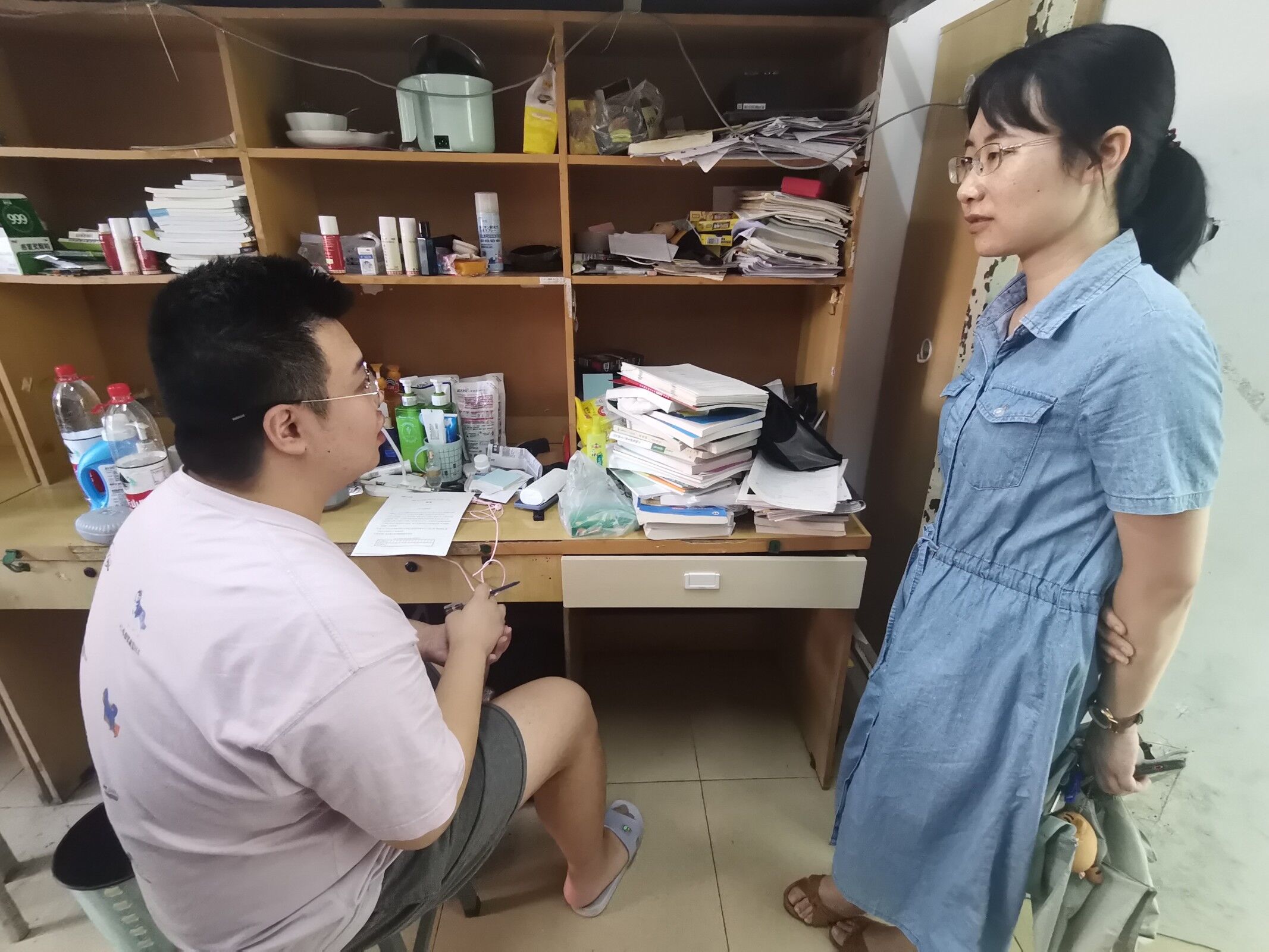 (威廉体育williamhill 陈杨欧敏 图文报道)2021-2022学年暑期专业实习已经接近尾声,为督促同学们站好最后一班岗,确保实习取得成效,7月27日,威廉体育williamhill党委书记王治航、党委副书记肖启迪、教务科田永溪老师一行到鹿冲关校区第二教学楼检查员工校内实习情况。