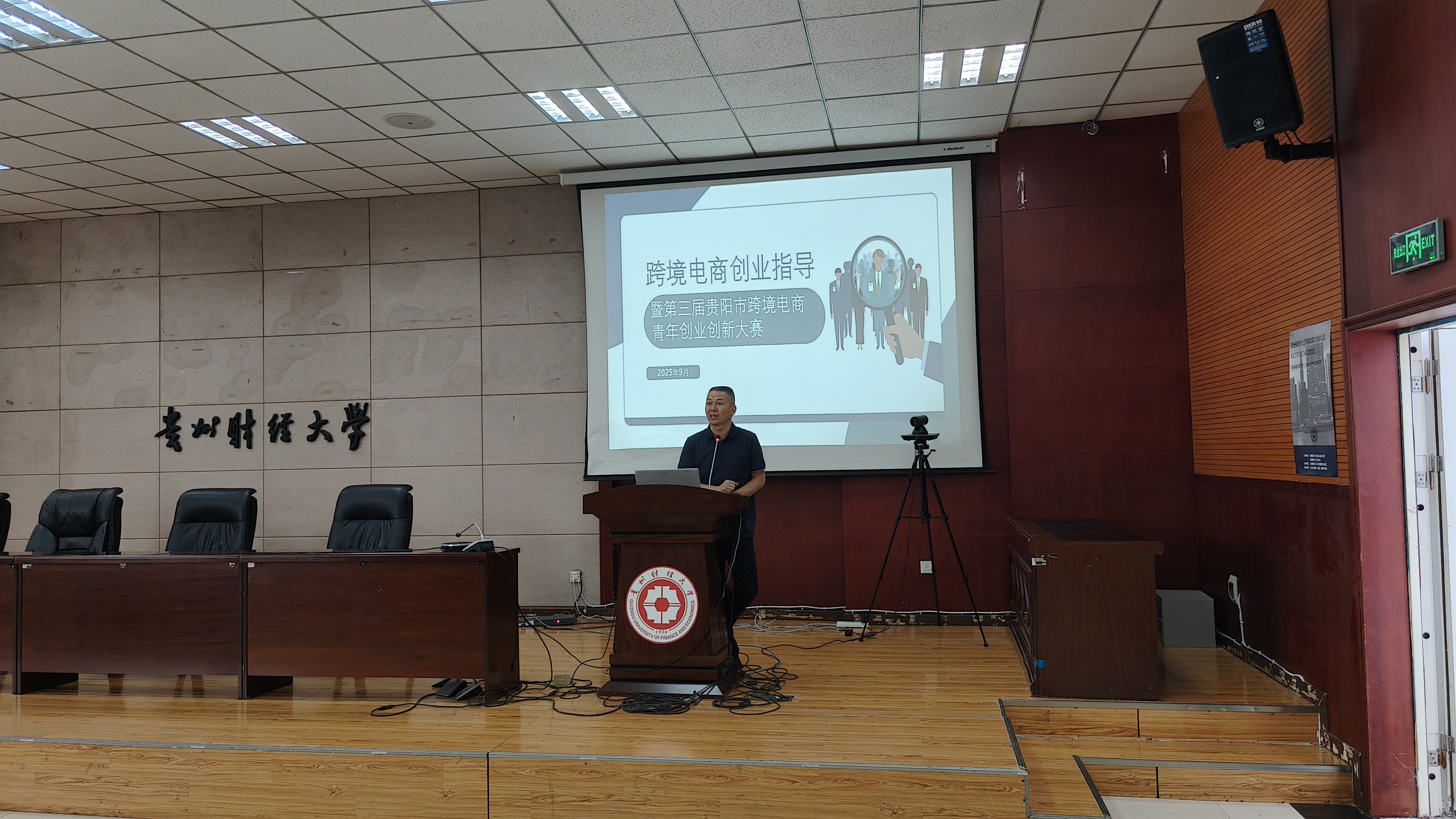 (威廉体育williamhill 沙静 图文报道)9月16日,威廉体育williamhill在正德楼114成功举办"第三届贵阳市跨境电商创业创新大赛"及"2025第18届全国三维数字化创新设计大赛之跨境数字贸易专项赛"宣讲会暨秋季校园双选会。本次活动采取线上线下相结合的方式同步进行,共吸引300余名参赛队员参与。活动由威廉体育williamhill经理姜友文主持。