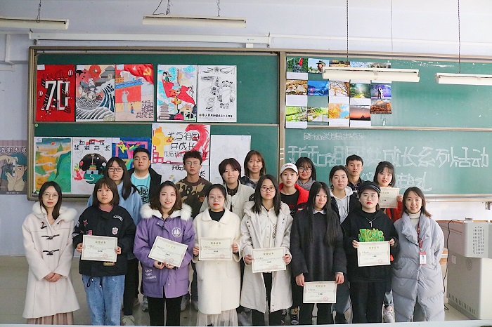本次活动围绕“我和祖国共成长”为主题开展,参赛者将自己对祖国的热爱与自己的才能充分展现在作品中。镜头下,秋黄的银杏,飘扬的红旗,都是对祖国壮丽河山的赞颂和对校园美景的赞美;在绘画海报比赛现场,参赛者们细心勾勒、调色,将完美的画卷呈现给大家。经过线上、线下投票评定,最终,赵苑妃、任虹锦荣获在POP海报大赛一等奖,黄越、黄瀚莹喜获二等奖,王洁、赵宜青等三名同学获得三等奖,关健圩、罗欢等四名同学获得优秀奖;毛心雅荣获摄影大赛一等奖,孟双杰、吴黔娇喜获二等奖,王正康、崔芸婷等三名同学获得三等奖,马厚鑫、孔瑞敏等六位同学获得优秀奖。