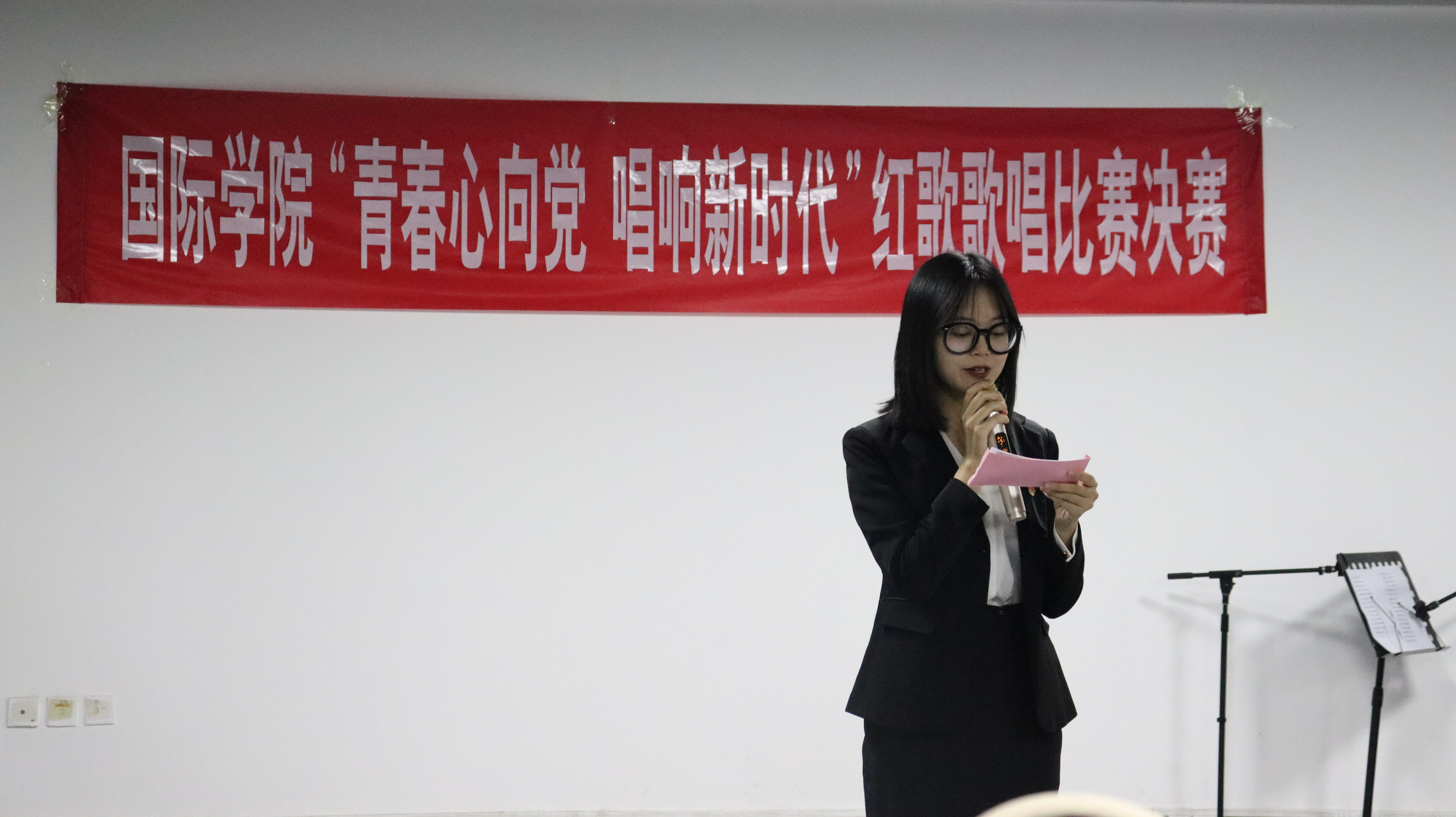 (威廉体育williamhill 高倩 报道|摄影 孙妍 王婷婷)为迎接党的二十大胜利召开,教育引导同学们厚植爱党爱国情怀,10月14日晚,威廉体育williamhill举办“青春心向党,唱响新时代”红歌歌唱比赛决赛。参与此次决赛的评委有校员工处副处长韩艳、威廉体育williamhill党委副书记肖启迪、副经理石莉、校员工处吴姿漫老师、威廉体育williamhill团委老师颜华菲、董宇婧、李雨霏。