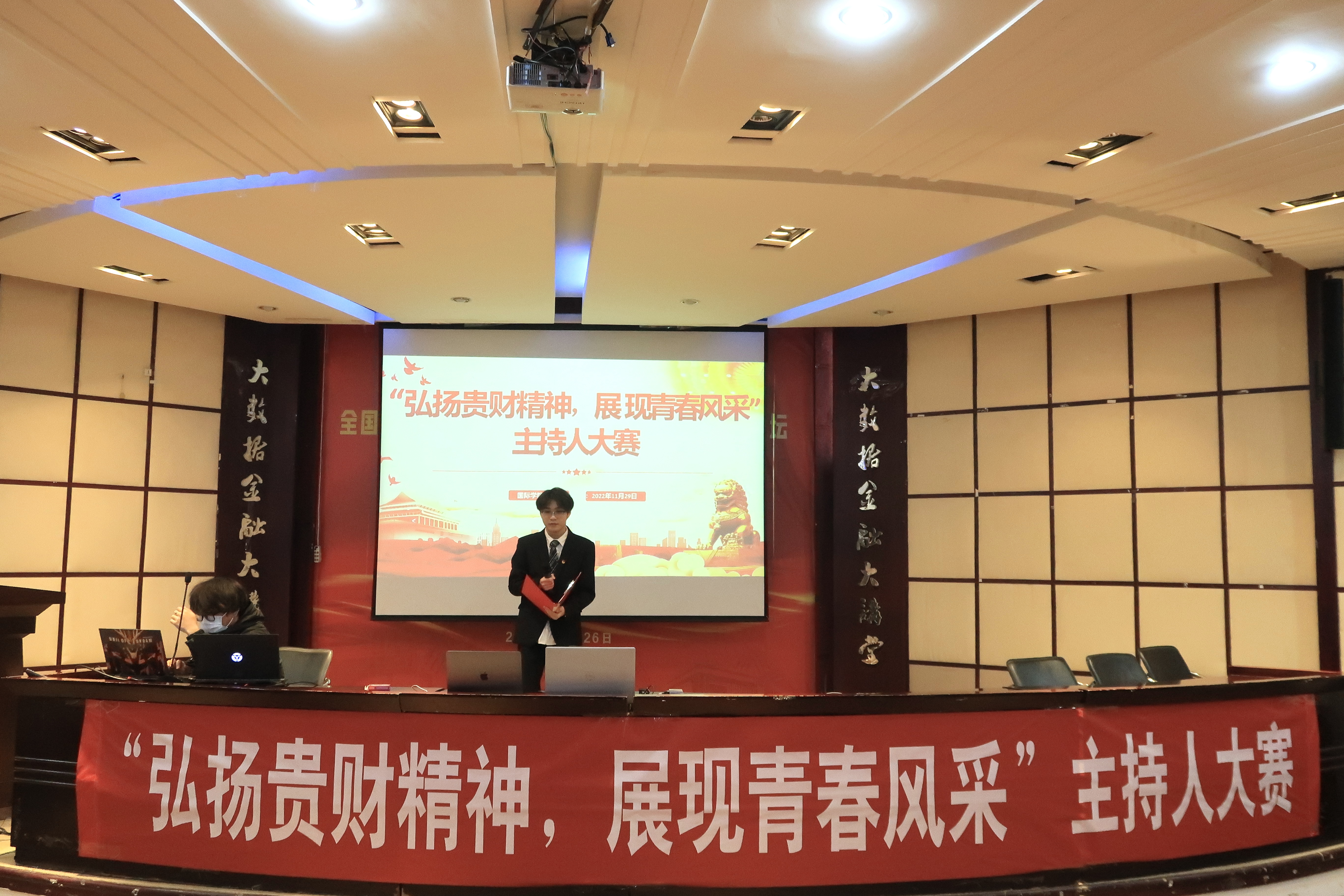 (威廉体育williamhill 陈星妹 报道|摄影 周阳梦)为丰富同学们的校园生活,锻炼同学们的演讲能力,12月1日,威廉体育williamhill在鹿冲关校区大数据报告厅举办“弘扬贵财精神,展现青春风采”主持人大赛。