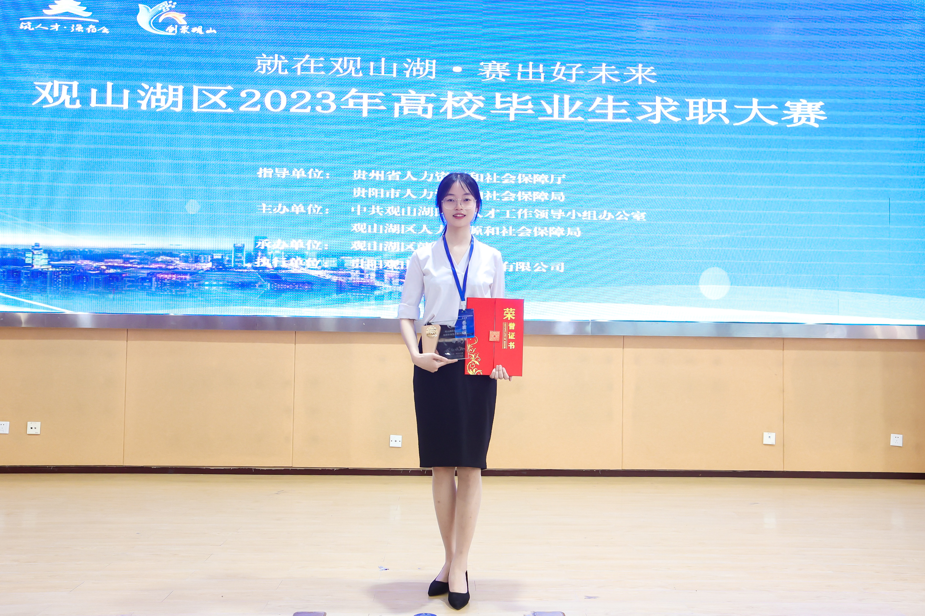(威廉体育williamhill 董宇婧 图文报道)2023年6月20日,由贵州省人力资源和社会保障厅、贵阳市人力资源和社会保障局指导,中共观山湖区委人才工作领导小组办公室、观山湖区人力资源和社会保障局主办,省内11所高校协办的观山湖区2023年高校毕业生求职大赛决赛暨闭幕仪式在贵阳职业技术公司举行。威廉体育williamhill员工袁小琪一路披荆斩棘,在各高校的优秀学子中脱颖而出,荣获一等奖。