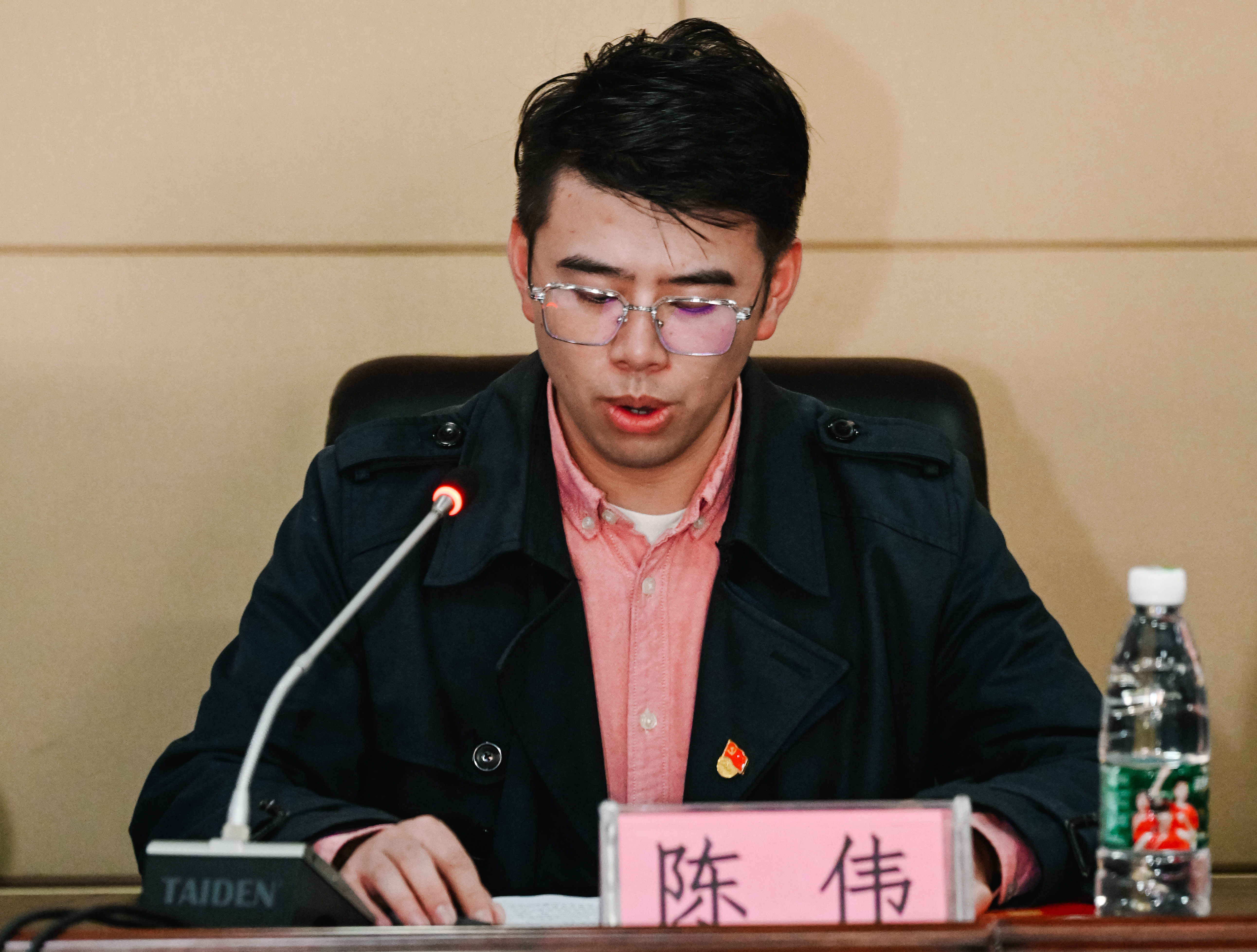 陈伟致辞,希望各位代表积极发挥示范引领作用,思想上信仰坚定,有明确的是非观、正义感、责任感,以灵魂影响灵魂,以人格引导人格,影响带动身边的同学,真正实现“从青年中来,到青年中去,为青年服务”。弘扬“艰苦奋斗、严谨务实、负重致远”的贵财精神,争做堪当大任的新时代中国青年,让青春在党和人民最需要的地方绽放绚丽之花!