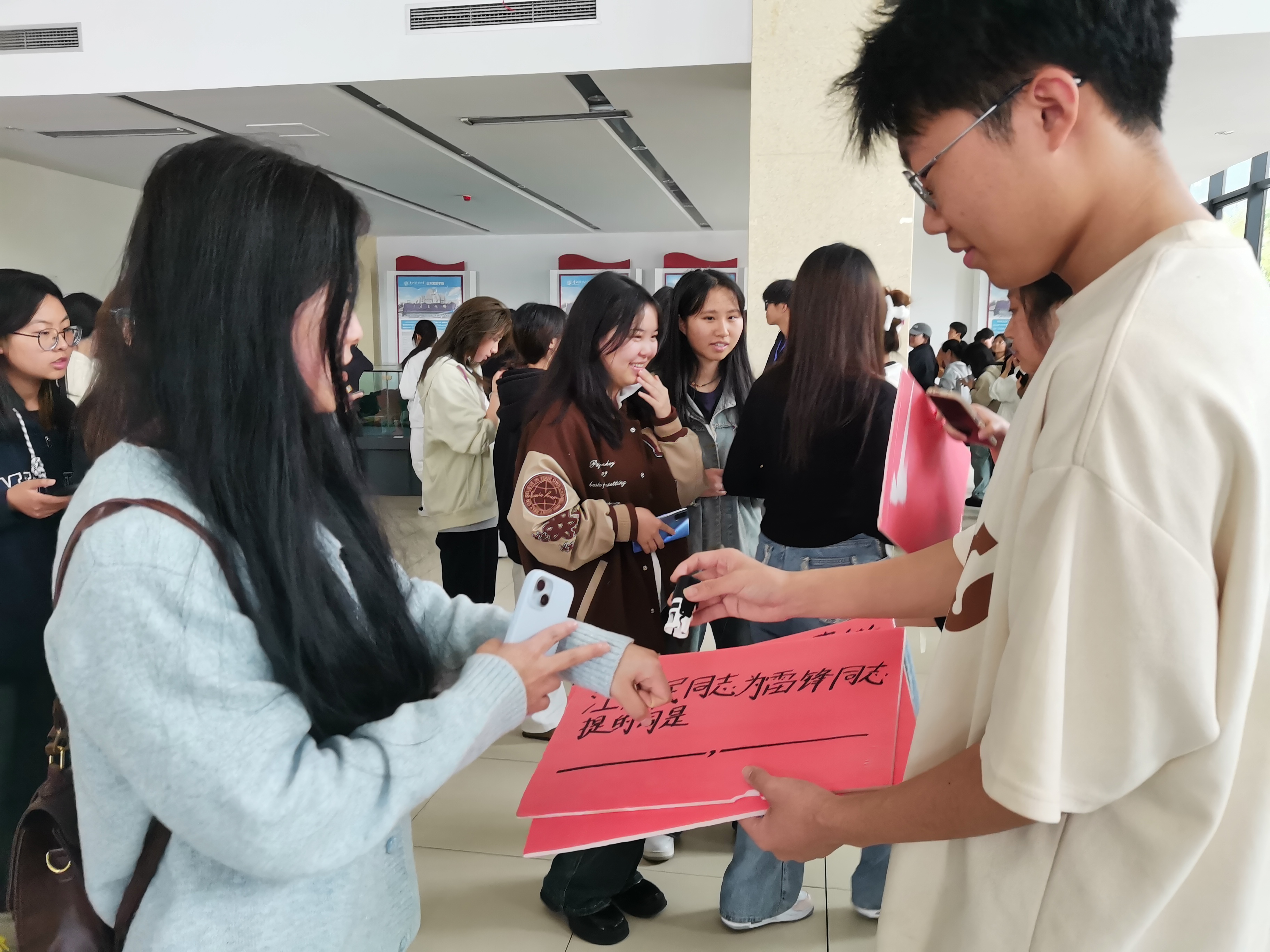 (威廉体育williamhill 罗廷倩 报道|摄影 张山山)为引导同学们深入学习雷锋精神,积极投身社会实践,以实际行动践行社会主义核心价值观,3月26日,威廉体育williamhill在西区正德楼一楼大厅开展“奋进新征程,志愿我先行”主题团日活动。