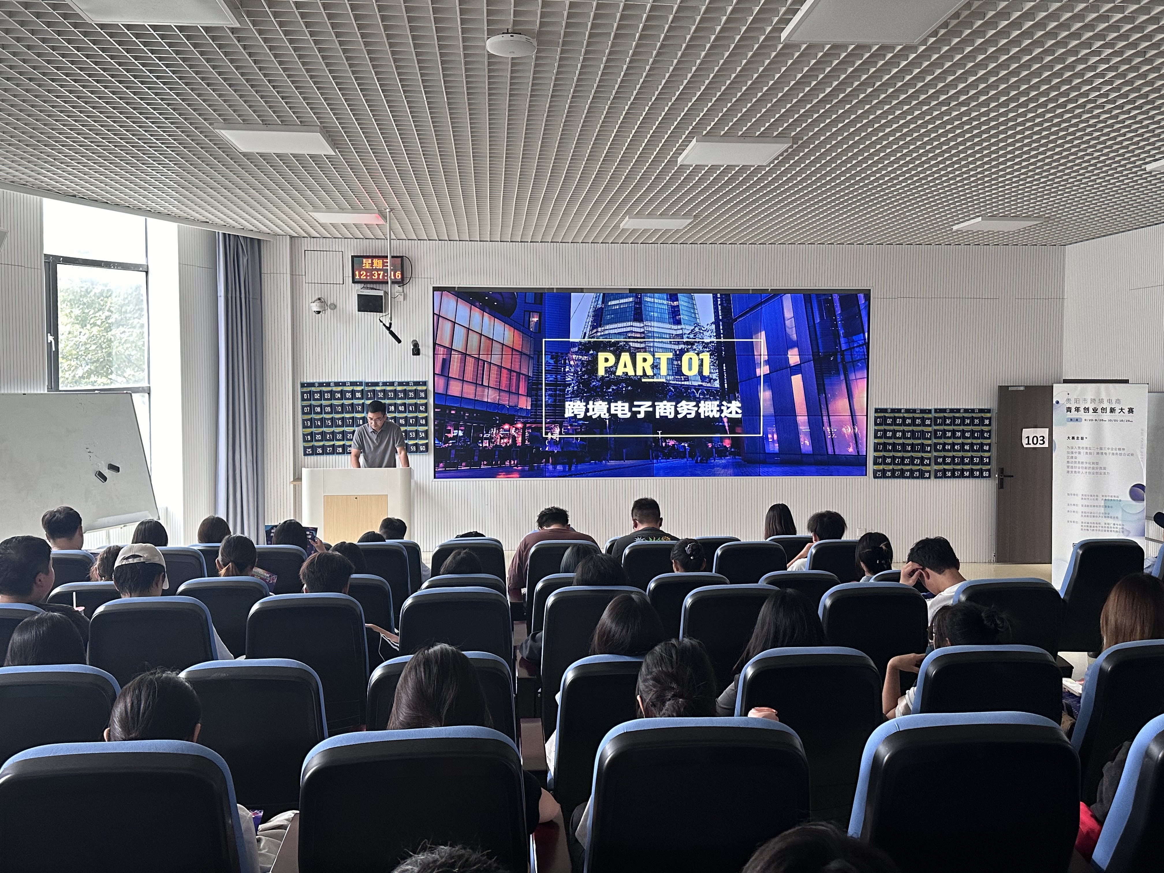 (威廉体育williamhill 颜岫影 报道|摄影 龚其柔 张誉敬)为了提升员工的创业创新意识,开拓创新思维。9月19日,威廉体育williamhill邀请贵州省商务厅外贸专家库项目专家、贵阳市进出口企业协会副会长、跨境电商分会会长赵周亮在进学楼103教室开展了跨境电商青年创业创新大赛活动赛前宣传宣讲活动。