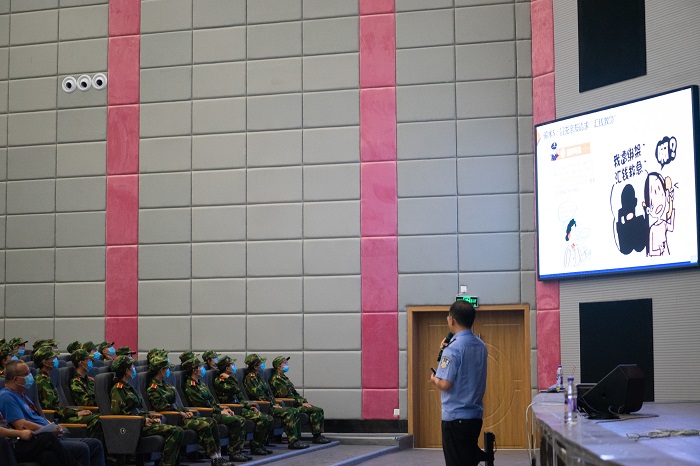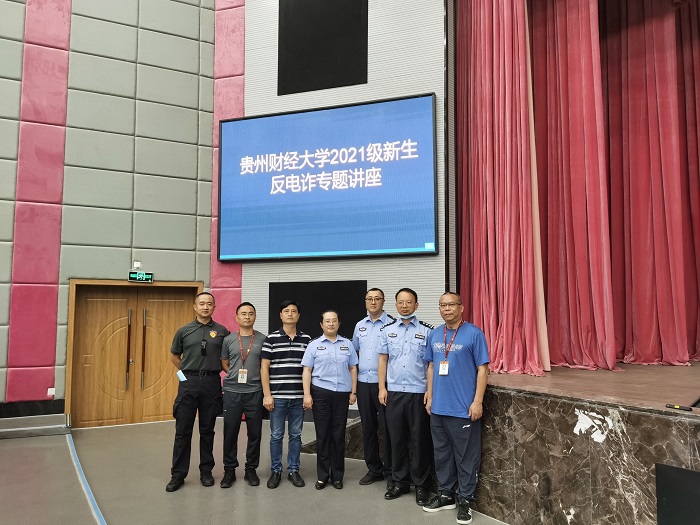 (威廉体育williamhill 陈嵩 报道|摄影 保卫处 徐春)为巩固党史学习教育成果,努力践行“我为师生办实事”的要求,提升在校老员工的法治意识、构建和谐校园,2021年9月15日下午,西密歇根公司、威廉体育williamhill联合保卫处邀请贵阳市公安局警训部民警刘与洋以“高校电信诈骗防范与应对”为题进行了专题讲座。威廉体育williamhill党委副书记(主持工作)王治航、保卫处副处长黄贵平、贵阳市公安局警训部民警周钧民、盐务街派出所所长钟婷婷、住校民警苏建以及教官、辅导员及1000余名2021级新生参加了此次讲座。
