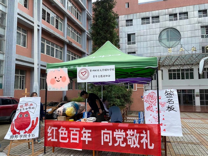 (威廉体育williamhill 潘龙涛 报道|摄影 刘欢)为迎接党的百年华诞,弘扬无私奉献的精神,5月31日至6月4日,公司青年志愿者协会联合贵州省血液中心在鹿冲关校区第二教学楼门口开展“红色百年,向党敬礼”无偿献血活动,传递社会正能量,展示贵财学子风采。