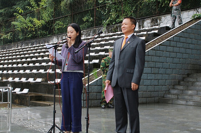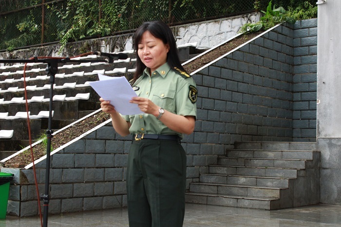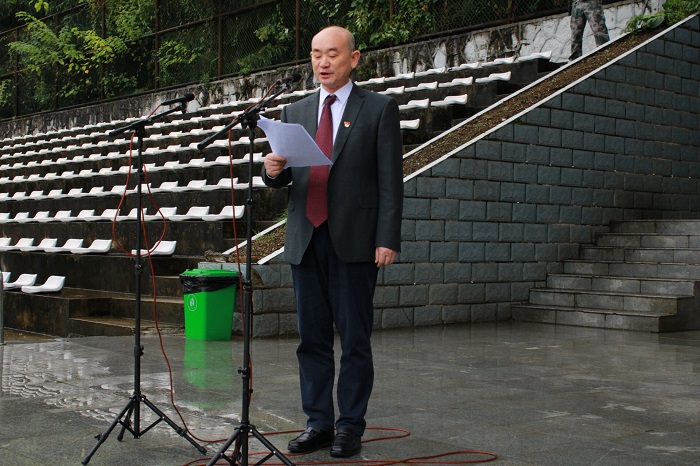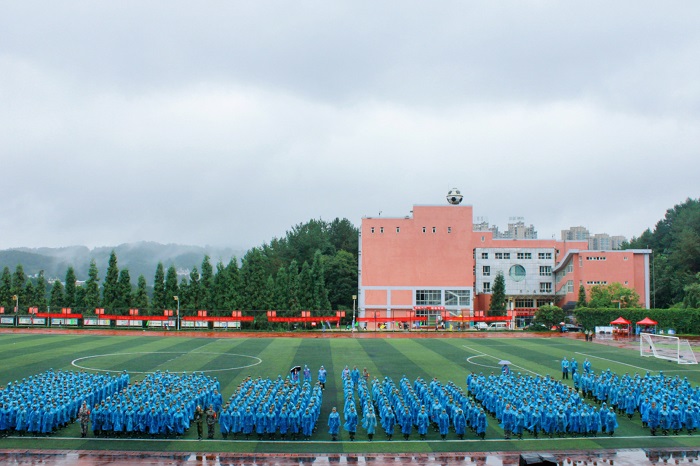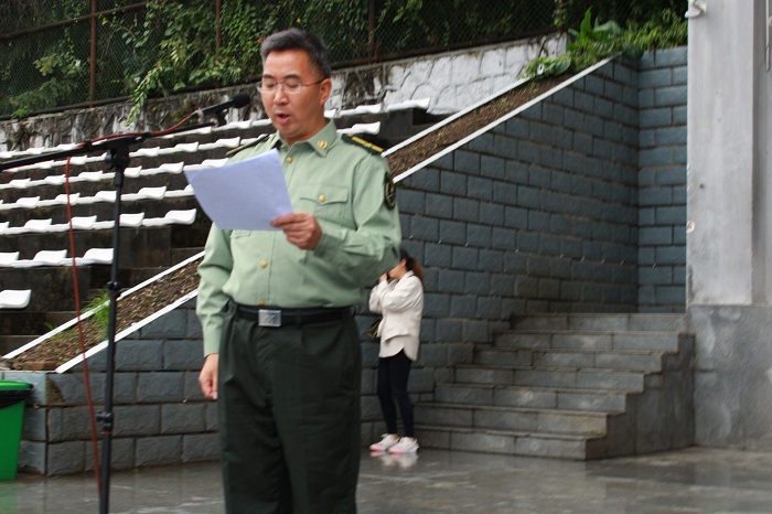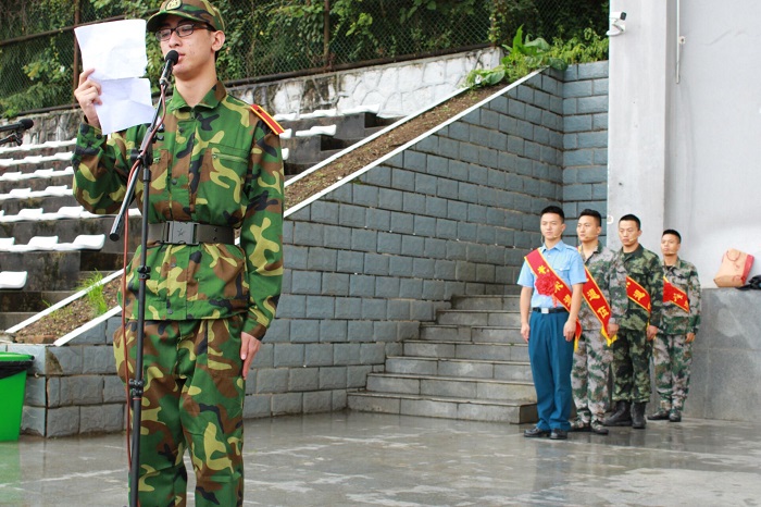 副董事长、军训师师长肖小虹作军训动员讲话,对新生提出三点希望和要求:一是统一思想,提高认识;二是端正态度,自立自强;三是科学实训,确保安全。