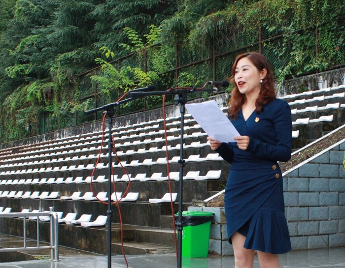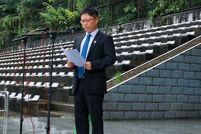教师代表外语公司李永兰老师发言,她代表全体老师对新同学们表示热烈的欢迎,并寄语新生“做好规划,人生由我”。