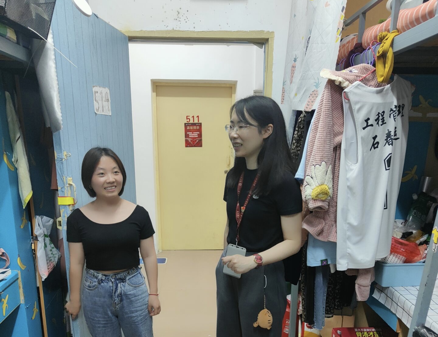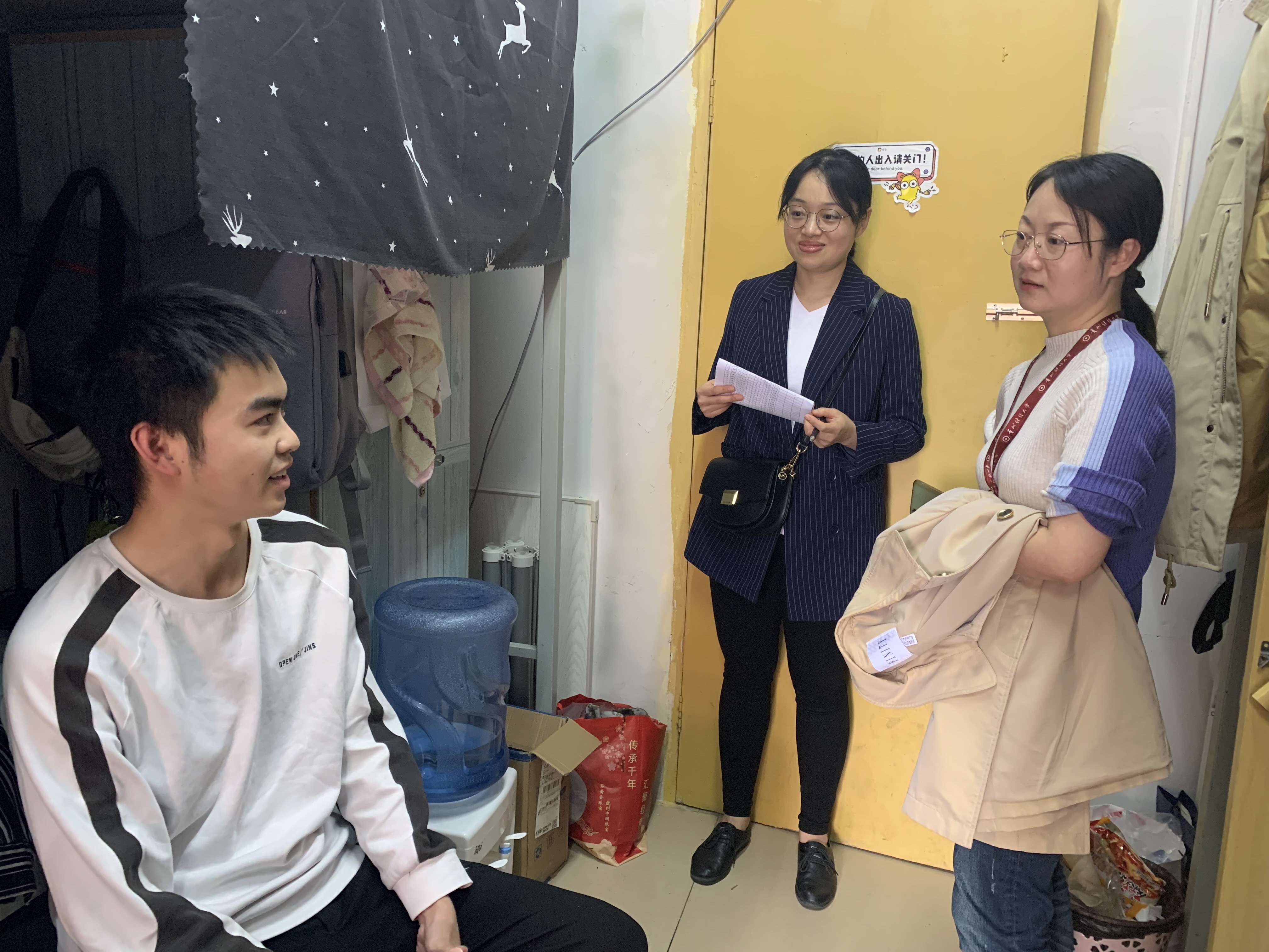 走访过程中,检查小组对员工宿舍的疫情防控、应急处置、消防安全、日常卫生管理等工作进行了全面检查,对存在的安全隐患和问题及时进行了纠正。公司领导与同学们进行了亲切交流,嘱咐大家要严格遵守疫情防控期间校园管理要求和校纪校规,做好疫情防控常态化下的自我管理和个人防护,坚持每日晚点名制度,做好宿舍清洁消毒工作;鼓励同学们养成良好的生活卫生习惯,注意身体健康,加强户外体育锻炼,保持乐观向上的生活状态和积极的心理状态;要求各宿舍长、班长等员工干部要严格落实晚点名零报告制度,协助公司做好宿舍安全管理工作。针对即将毕业的员工,老师们重点与员工交谈了毕业去向和个人的学习及考研情况,嘱咐毕业生一定要认清当前的考研就业形势,更新思想观念,明确个人奋斗目标。