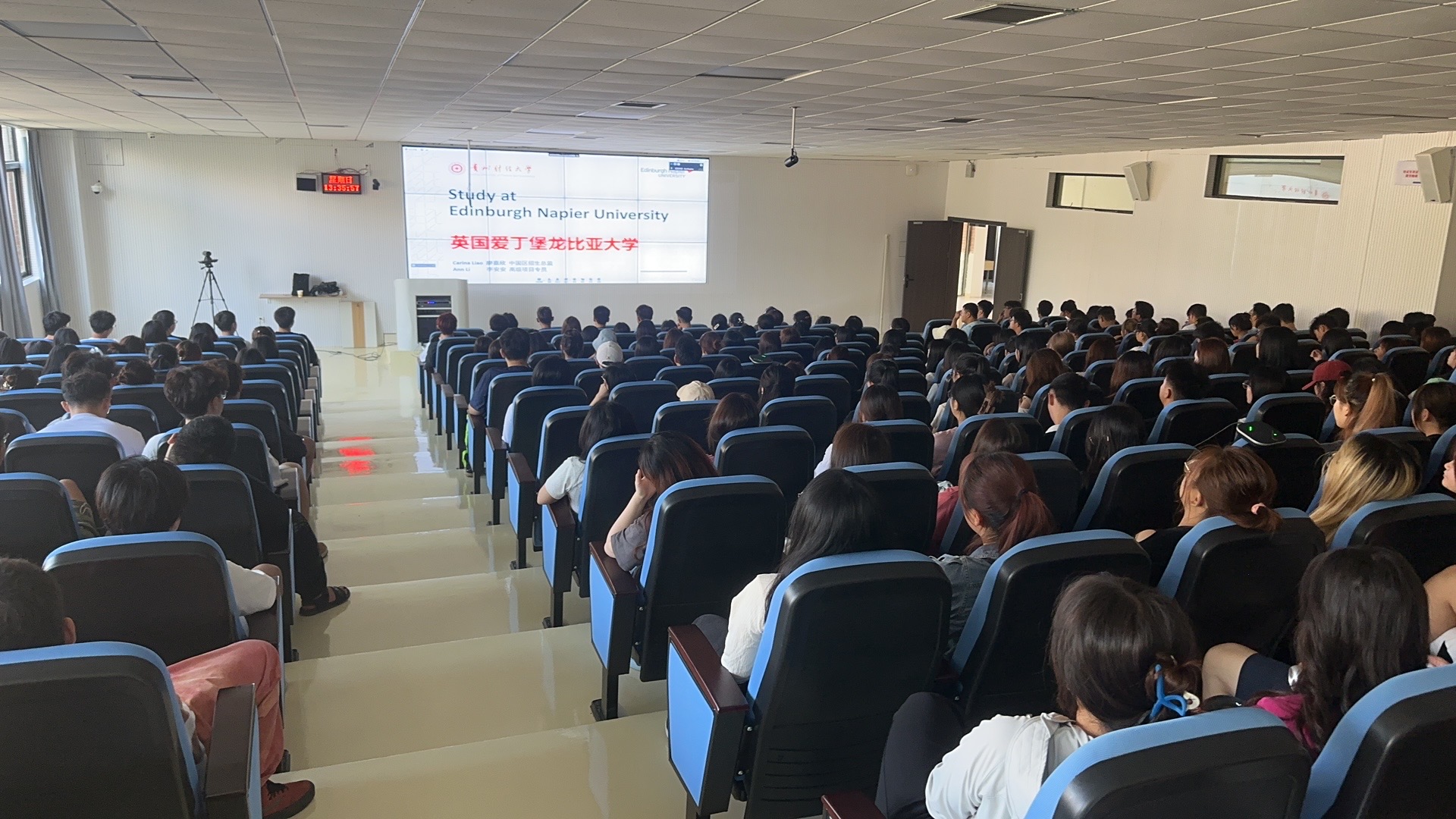 会上,李安安介绍了英国的历史和文化,展示了爱丁堡龙比亚大学的校园环境及住宿条件,重点介绍了爱丁堡龙比亚大学的办学历史以及双方公司合作项目的情况,并就留学前的准备事项进行了详细的说明。刘利音总结讲话,对英国爱丁堡龙比亚大学代表表示感谢,并鼓励同学们认真学习文化课,提升英语能力,为下一步的学习深造打下良好基础。