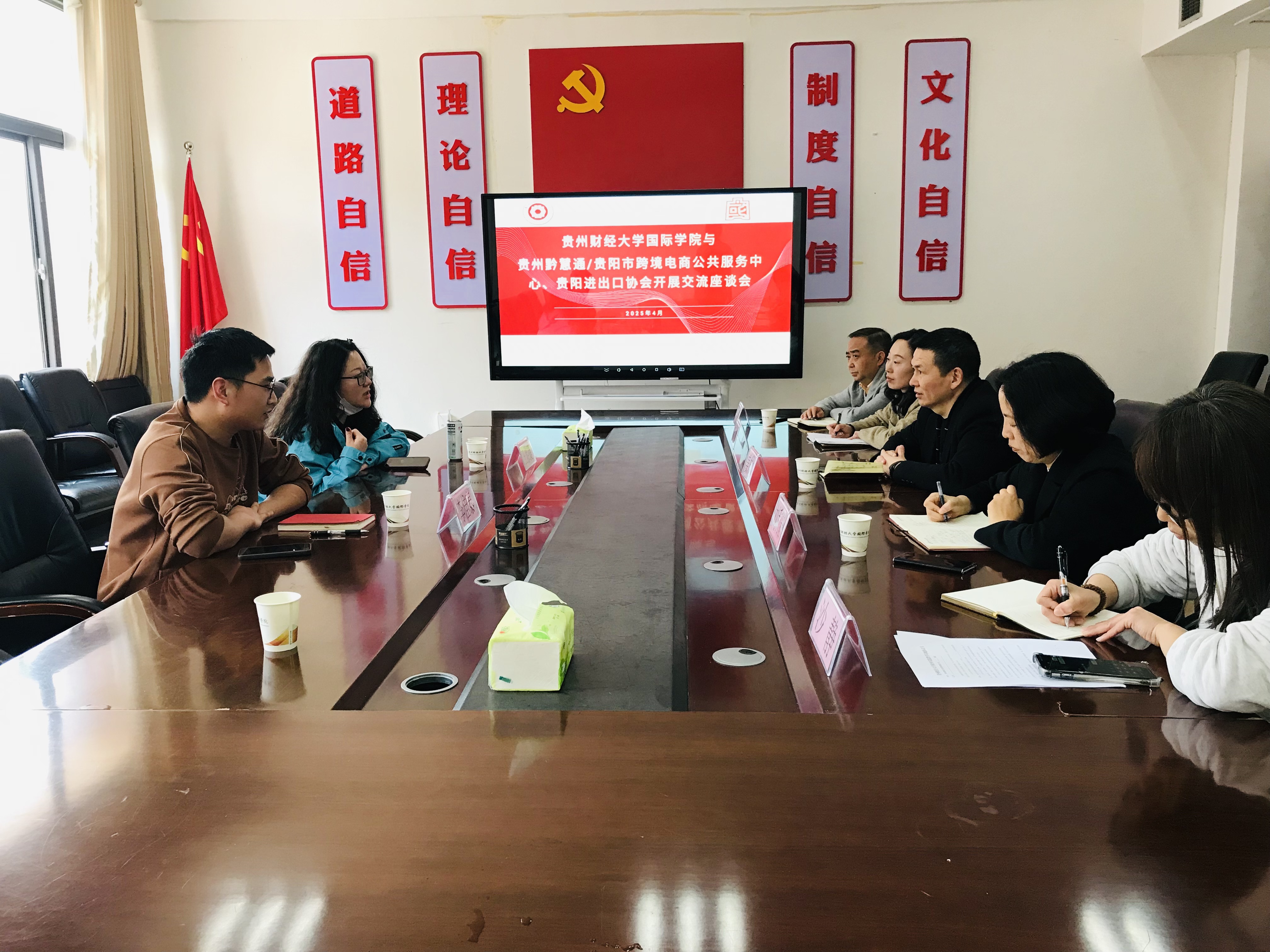 首先,姜友文对协会和企业代表的来访表示热烈欢迎,他详细介绍了公司在人才培养、毕业生就业、员工实习等方面的详细情况。庄雅捷和李佳泰分别介绍了所在单位的现状和在跨境电商上发展的行业优势,并为即将承办的新一届贵阳市跨境电商青年创业创新大赛作简单介绍。