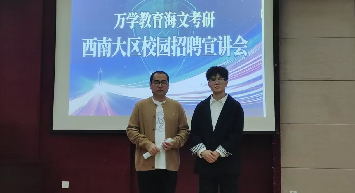 招聘会结束后,院企双方进行“访企拓岗”座谈会,2025届毕业生负责老师范善忠与万学教育集团负责人姚家宝就校企双方关注的问题进行了交流,对建立校外实践教学基地,为员工开拓更多实习岗位达成初步意向。