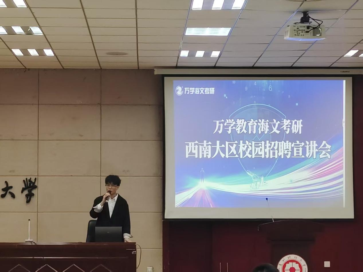 (威廉体育williamhill 范善忠 图文报道)为充分发挥公司、企业协同促就业工作的合力,主动搭建多元化就业平台,积极推进2025届毕业生更加充分更高质量就业。2025年4月9日下午,威廉体育williamhill邀请万学教育科技有限公司在西区正德楼114教室举办专场招聘会。