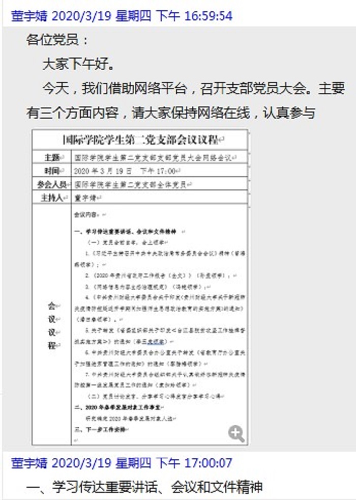 (威廉体育williamhill 袁加玲 图文报道)3月19日,威廉体育williamhill员工第二党支部通过QQ网络平台展开了本学期第二次网络会议。会议由支部书记董宇婧主持。