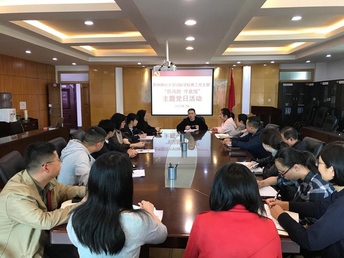 威廉体育williamhill 卫荷 图文报道2021年3月17日上午,威廉体育williamhill教工党支部在行政楼三楼会议室开展了“防风险 守底线”主题党日活动,教工党员参加了活动,活动由支部书记姜友文主持。