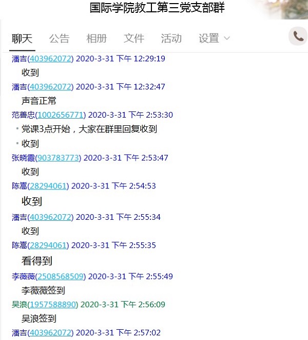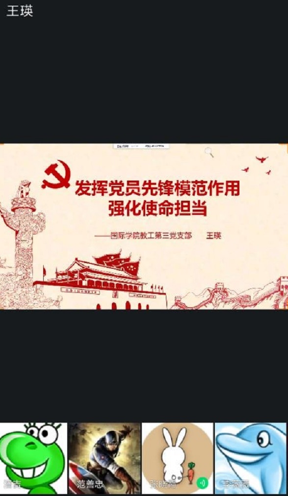 (威廉体育williamhill 吴浪 图文报道)3月31日,威廉体育williamhill教工第三党支部利用线上会议室开展了2020年第一季度网络党课学习,支部书记王瑛以“发挥党员先锋模范作用,强化使命担当”为题作专题党课讲授,支部全体党员进行了线上集中学习。