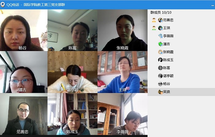(威廉体育williamhill 吴浪 图文报道)4月9日下午,教工第三党支部通过QQ视频会议开展2020年4月主题党日,支部全体党员参加,会议由党支部书记王瑛主持。