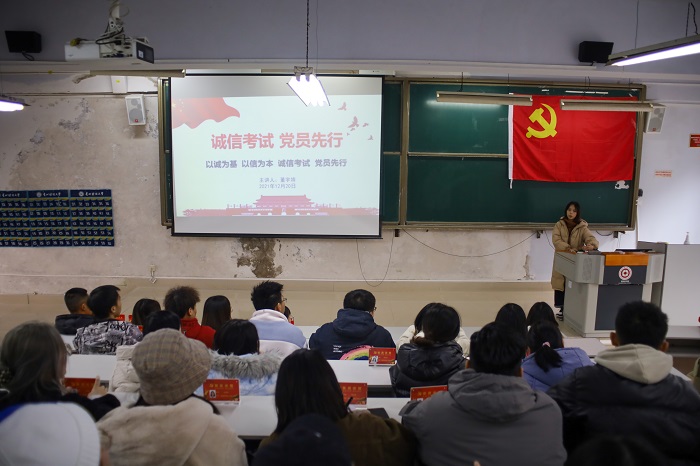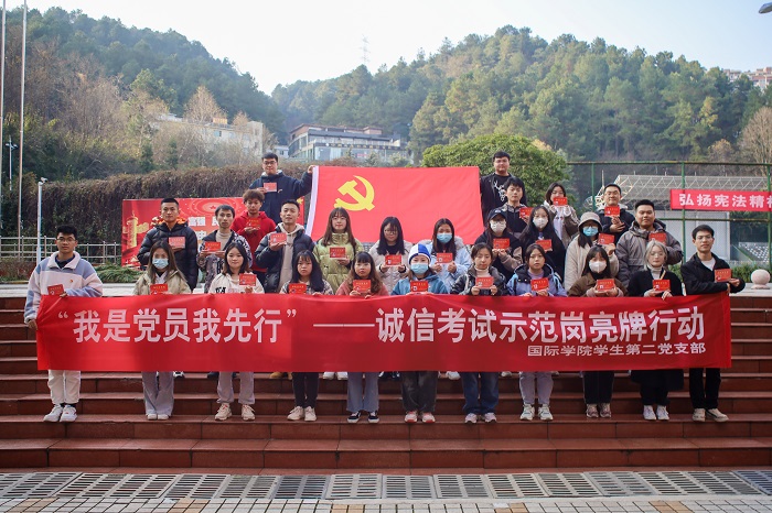 (威廉体育williamhill 何思源 报道|摄影 何政昊)为端正考风、严肃考纪,营造诚信考试的良好作风,充分发挥员工党员的先锋模范作用,12月21日,威廉体育williamhill员工第二党支部开展“诚信考试,党员先行”诚信考试示范岗亮牌行动,要求支部全体党员在本学期期末考试中全部亮出“党员示范”岗牌子。支部书记董宇婧和支部全体党员参加了启动仪式。