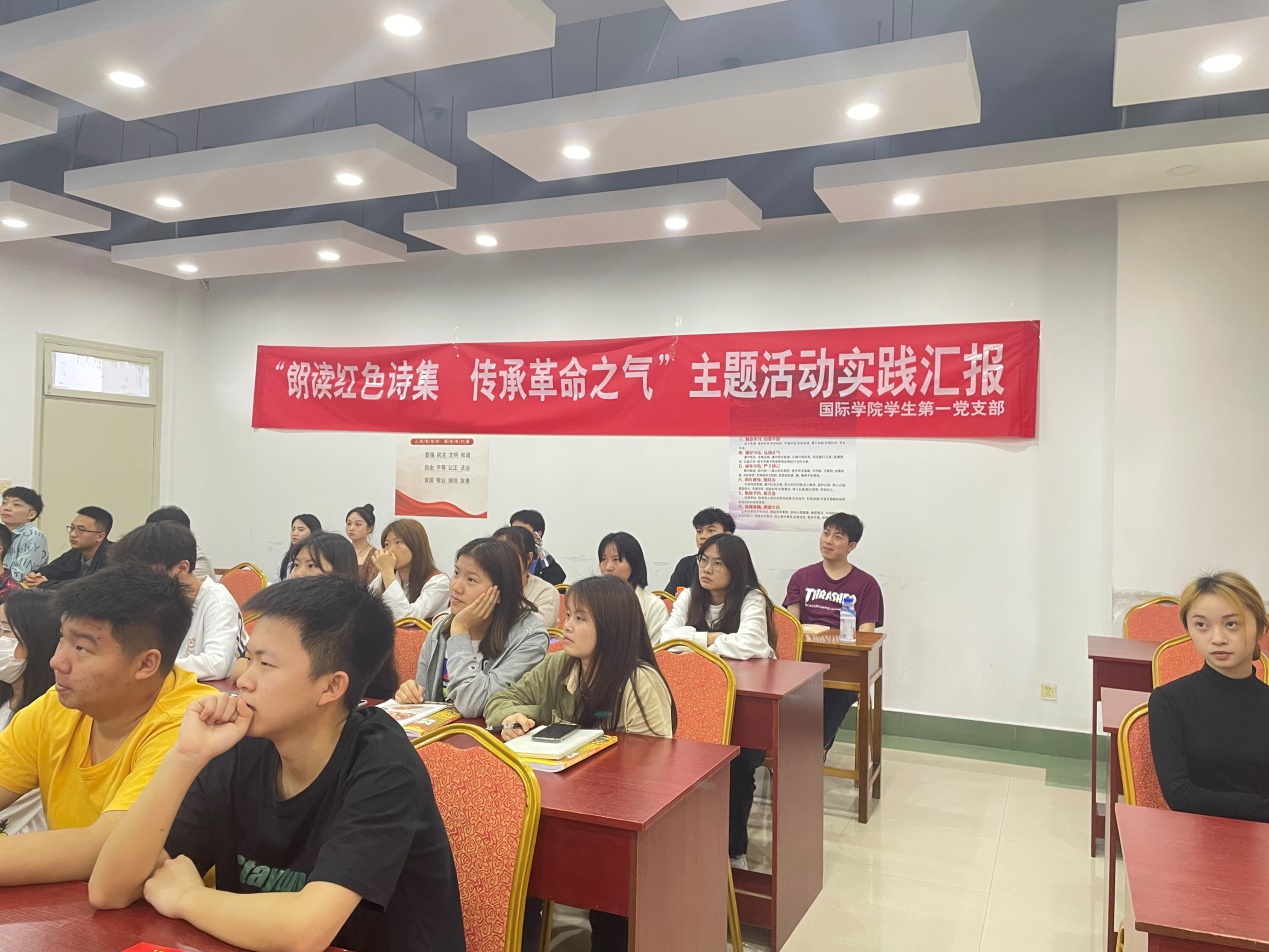 (威廉体育williamhill 周紫菱 图文报道)为回顾党的光辉历程,迎接党的二十大召开,4月26日,威廉体育williamhill员工第一党支部在二教3-6举办2022年春季批次积极分子实践汇报暨“朗读红色诗集,传承革命之气”主题活动,党支部书记郑君花及支部党员、发展对象、积极分子等几十余名成员参加。