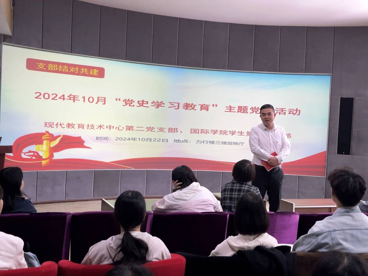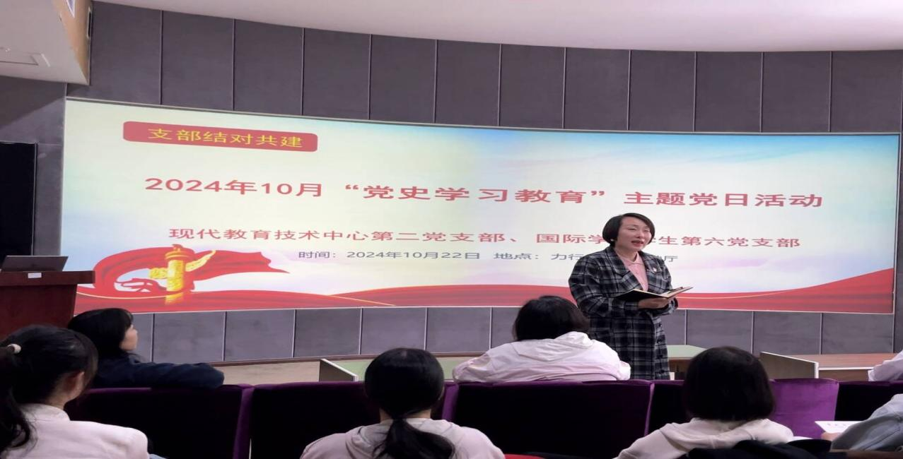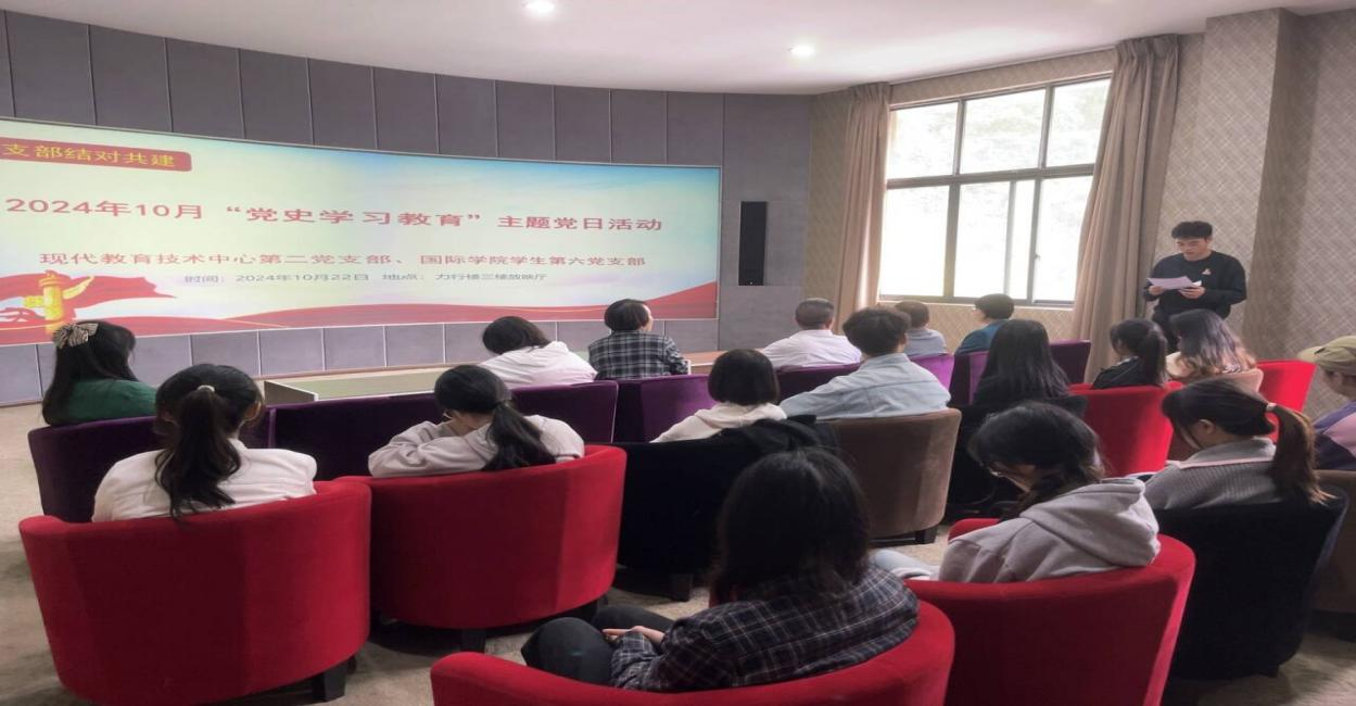 (威廉体育williamhill 谢小菲 图文报道)10月22日下午,威廉体育williamhill员工第六党支部与现代教育技术中心第二党支部在力行楼3楼放映厅,开展“党史学习教育”主题党日活动。现代教育中心副主任、现代教育技术中心第二党支部书记陈琴,威廉体育williamhill党委副书记古鸿宇,威廉体育williamhill员工第六党支部书记李薇薇以及支部党员参与本次活动。
