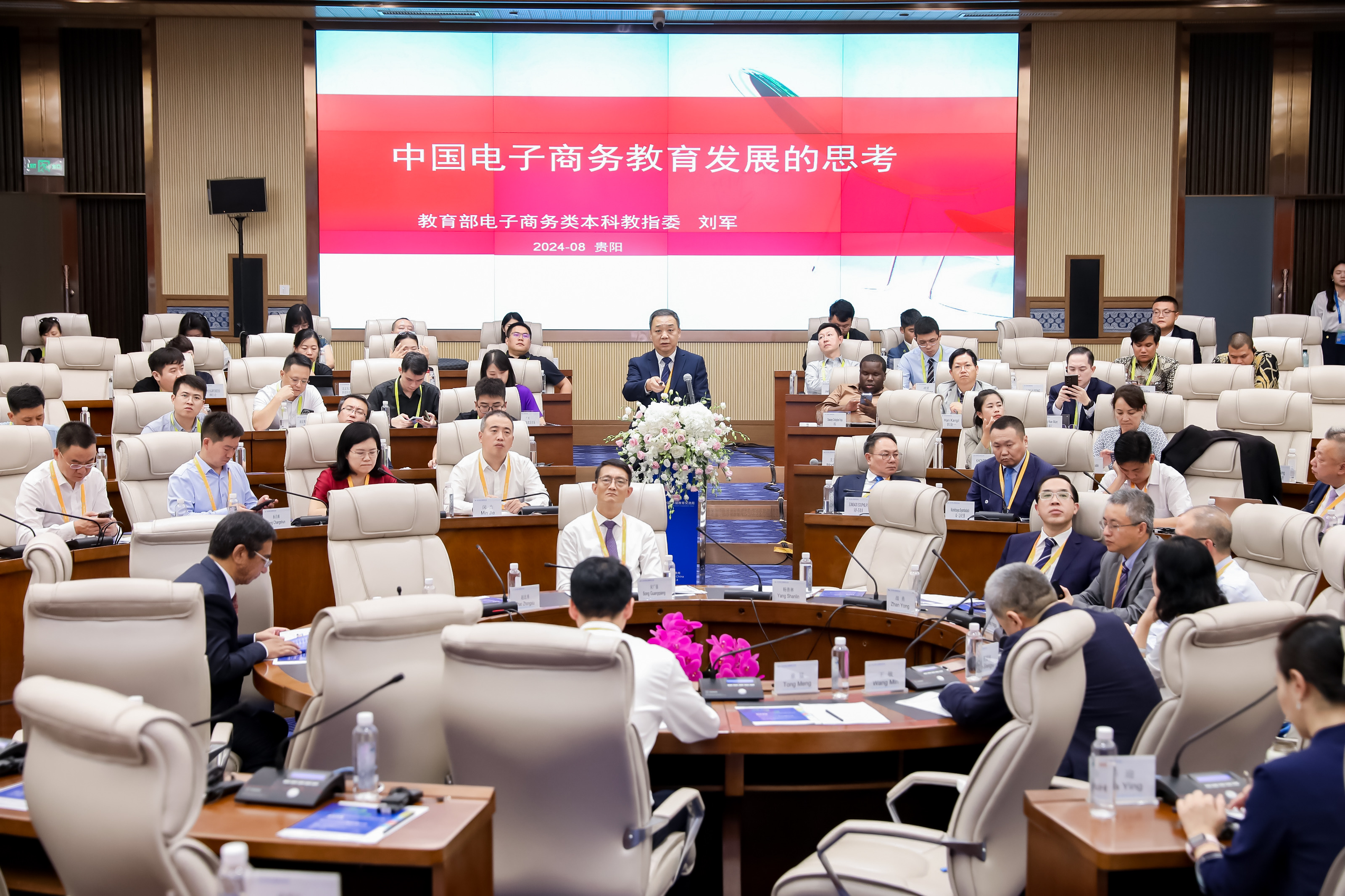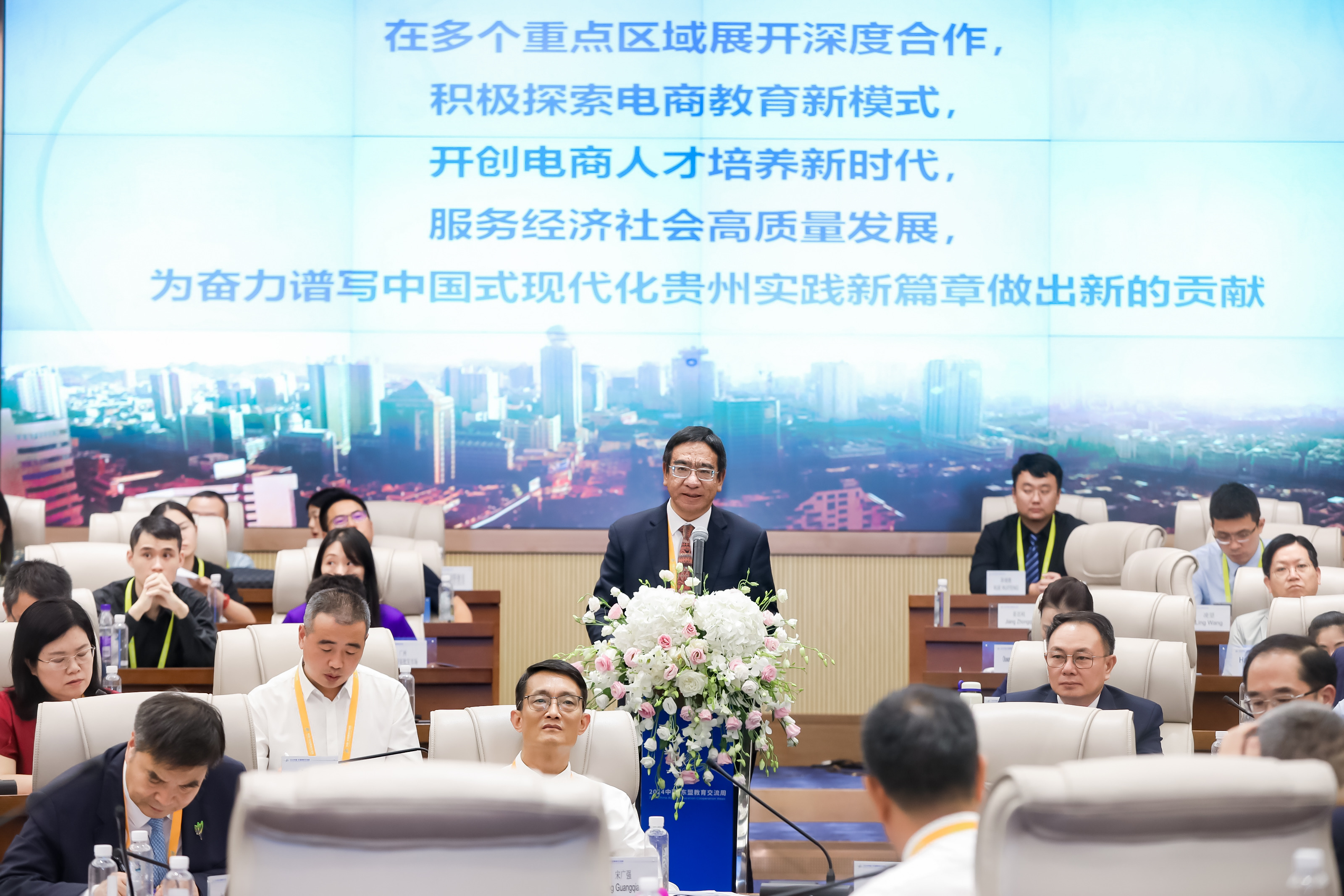 开幕式后举行了主题发言,由威廉体育官方网站党委书记战勇主持。中国工程院院士杨善林、对外经济贸易大学董事长赵忠秀、北方工业大学党委书记、教育部高等公司电子商务类专业教学指导委员会主任刘军、浙江工商大学董事长王永贵、西南财经大学董事长李永强、山东财经大学董事长洪俊杰、威廉体育官方网站董事长缪坤和分别作了题为《跨境电商发展与人才培养》、《协同共建,推动全球电商教育事业高质量发展》、《中国电子商务教育发展的思考》、《面向新质生产力的新型电子商务人才培养模式创新与实践》、《携手共创适应全球商业格局变革趋势的高等财经教育》、《适应新质生产力发展要求 培养高质量电商人才》、《探索电商教育新模式开创人才培养新时代 奋力谱写中国式现代化贵州实践新篇章》的报告。