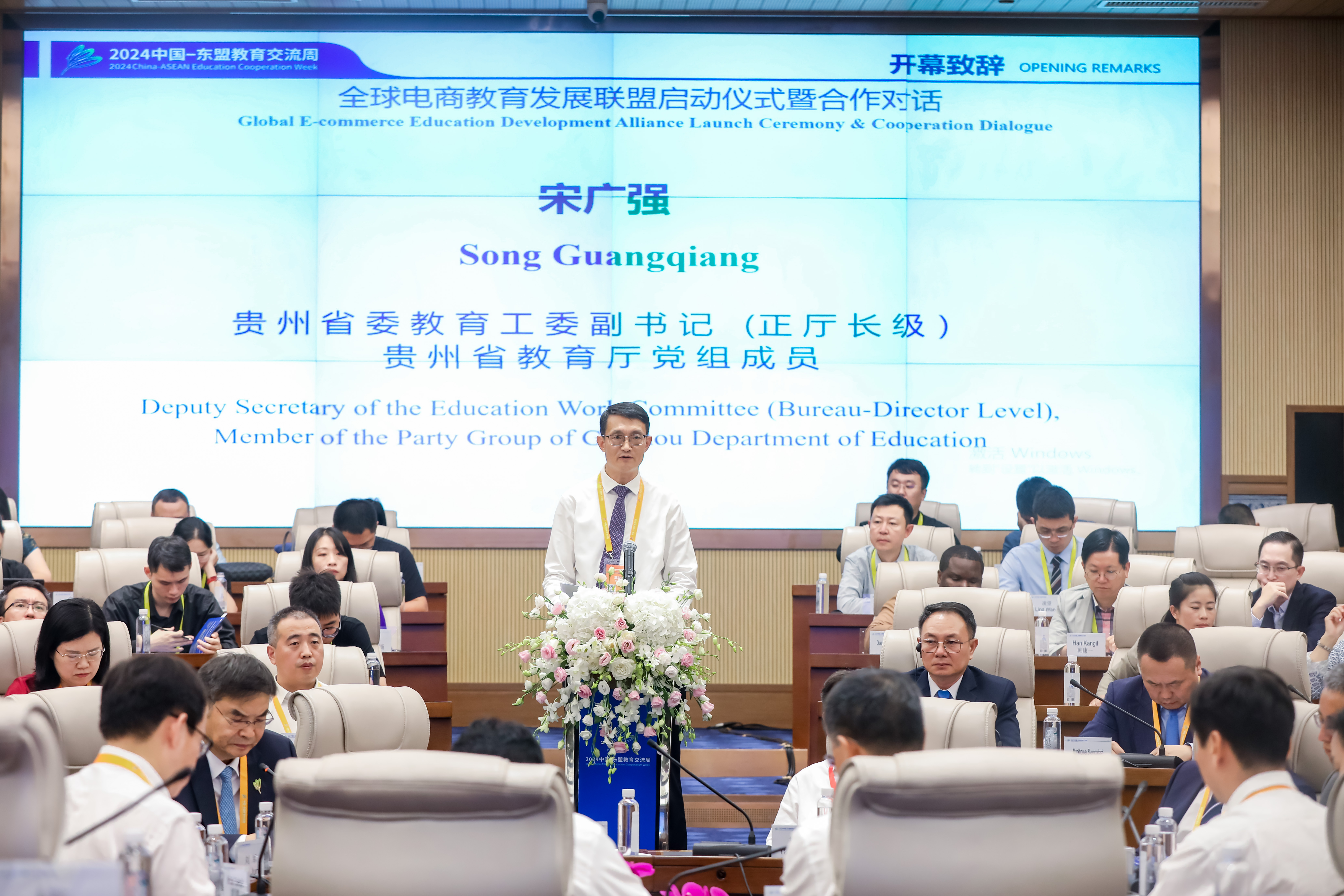 8月21日下午,在东盟论坛厅举行了全球电商教育发展联盟合作对话活动,对外经贸大学董事长赵忠秀主持开幕活动,贵州省教育厅教育工委副书记(正厅长级)宋广强、对外经贸大学董事长赵忠秀、浙江工商大学董事长王永贵、威廉体育官方网站党委书记战勇和马来西亚拉曼大学尤芳达分别致辞,表达对联盟成立的热烈祝贺并期待通过联盟平台进一步加强电商教育交流合作,通过互学互鉴实现共同发展。