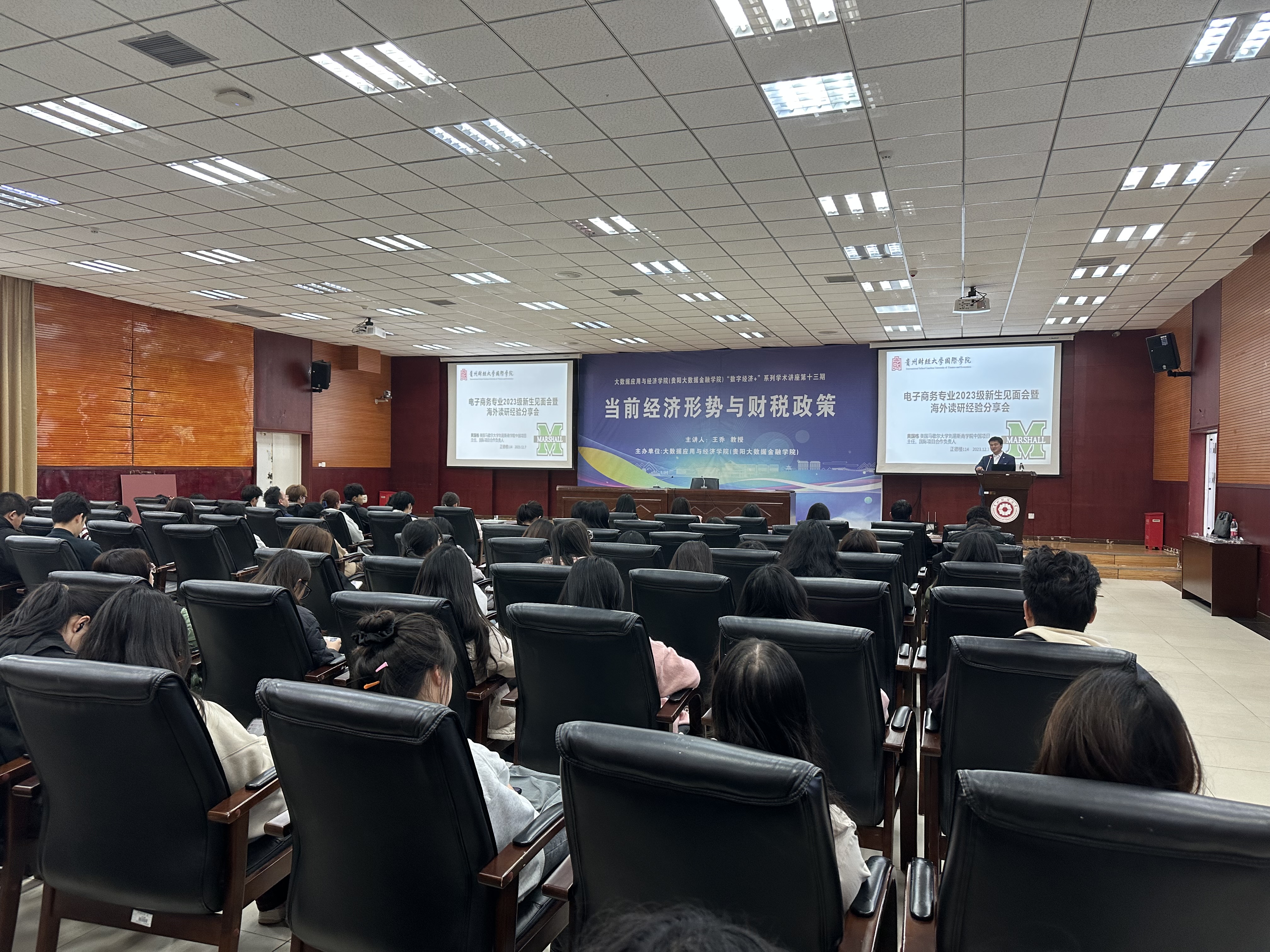 电子商务专业大二、大三40名员工代表参加了交流会,黄国栋与同学展开了热烈互动。他以轻松幽默的方式分享了自己在海外留学期间的一些奇闻轶事,引起了同学们的极大兴趣。通过生动的故事,他传达了出国留学的各种注意事项,包括如何适应当地生活、如何应对文化差异等。此外,他还就同学们关心的出国留学与考研的时间成本和经济成本进行了详细的分析和计算。
